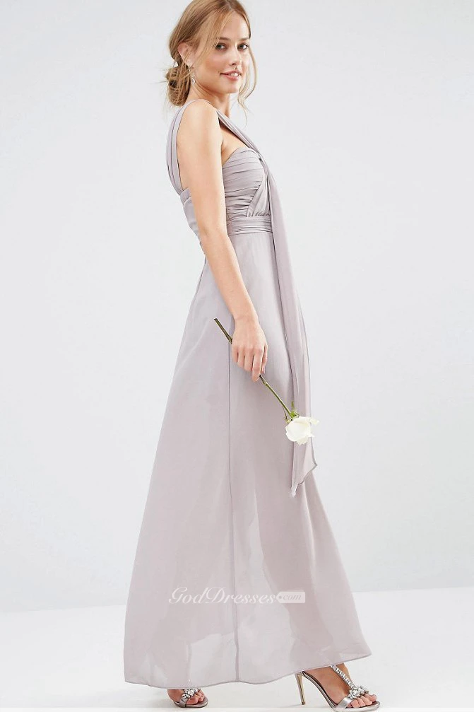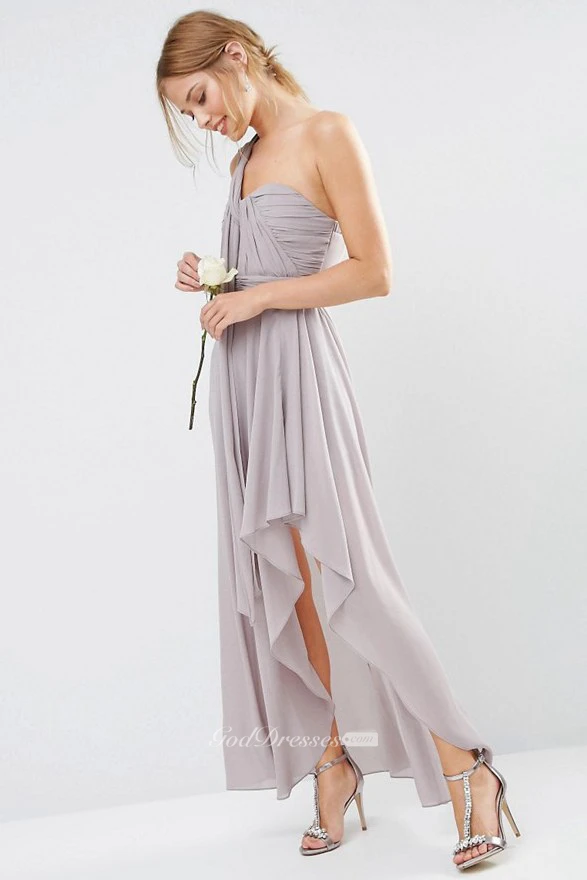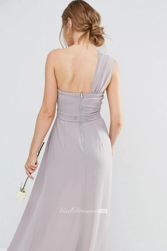 Ankle-Length Draped Sleeveless One-Shoulder Chiffon Bridesmaid Dress