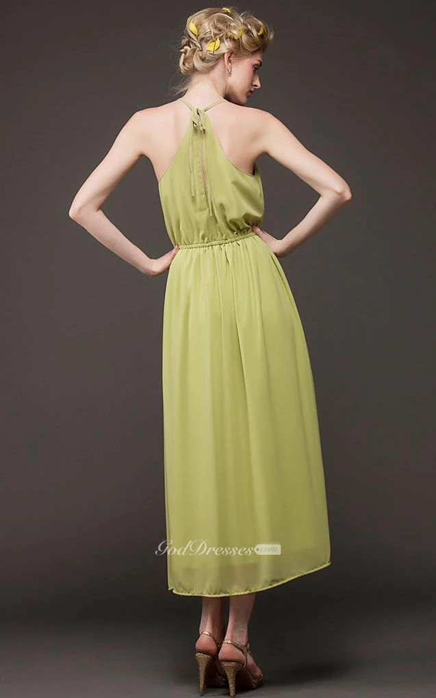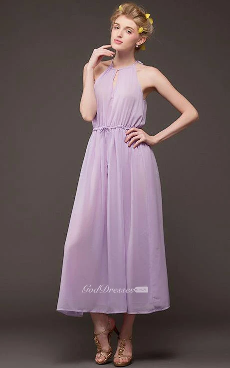 Ankle-Length Halter Sleeveless Chiffon Keyhole Dress