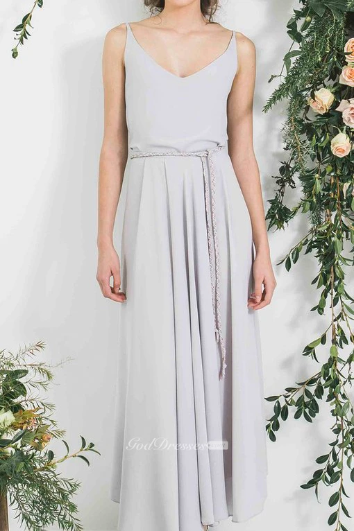 Ankle-Length Sleeveless Spaghetti Pleated Chiffon Bridesmaid Dress