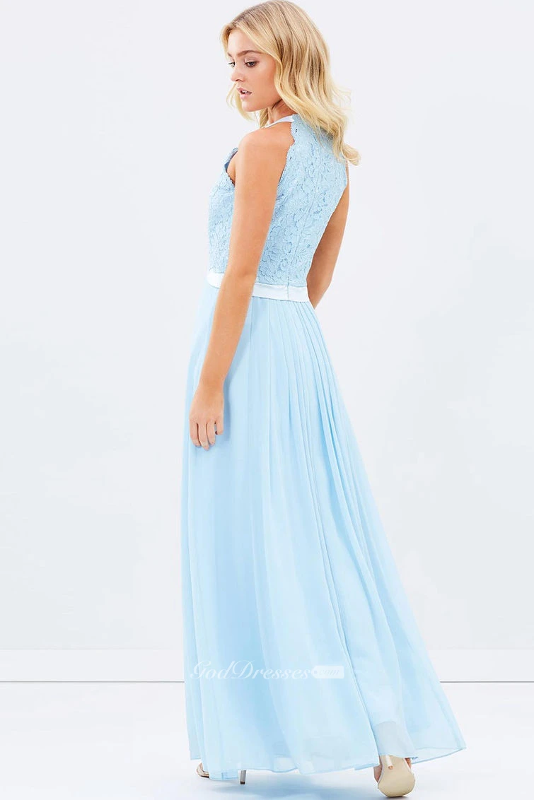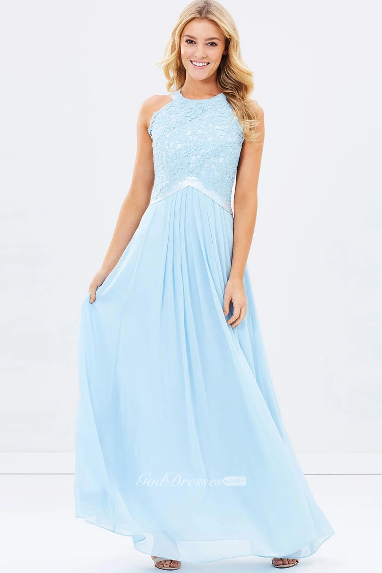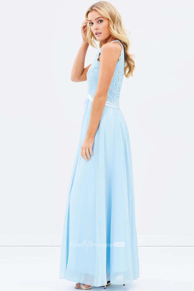 Appliqued Scoop Neck Sleeveless Chiffon Bridesmaid Dress With Ribbon