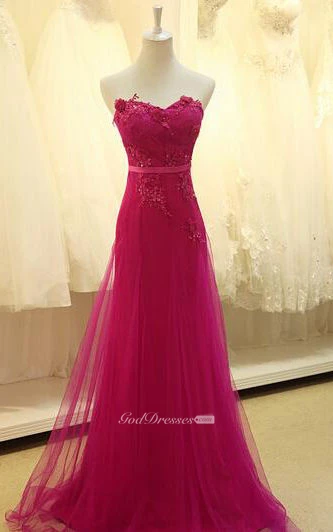 Appliques Sweetheart Pleated Chiffon Tulle Lace Dress
