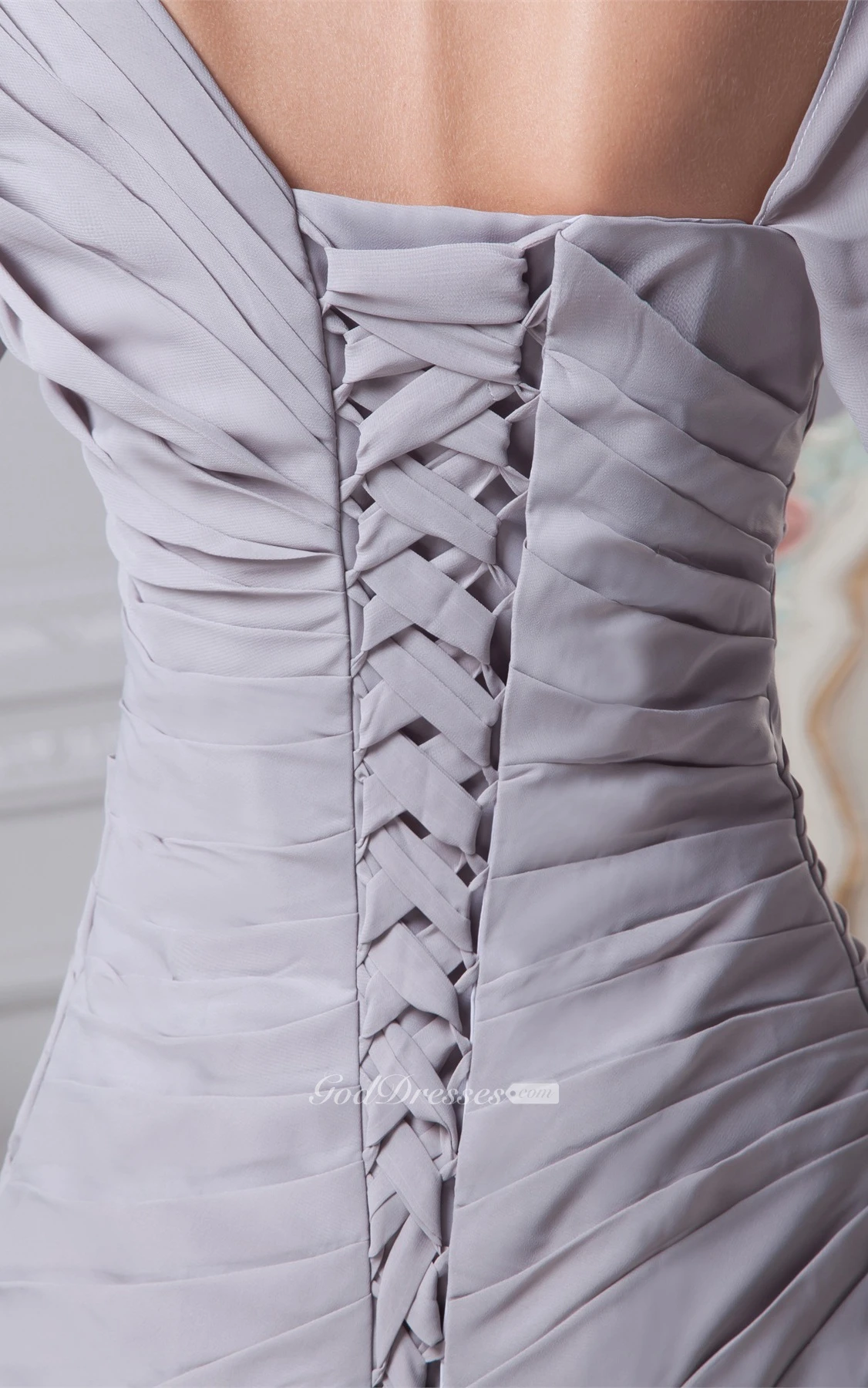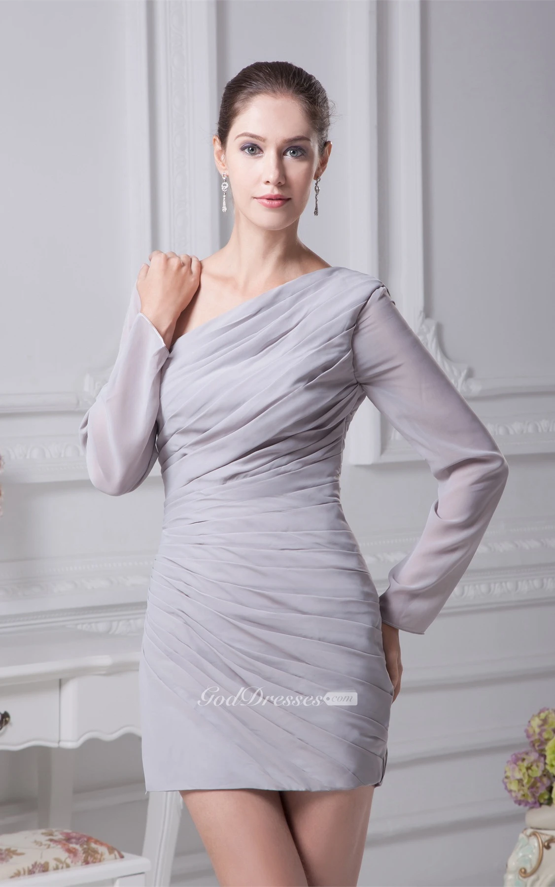 Asymmetrical Fitted Long-Sleeve Dress With Ruched Bodice