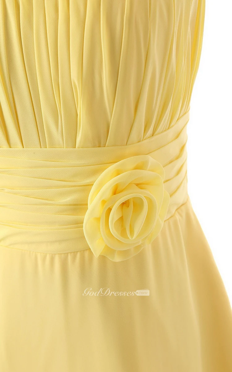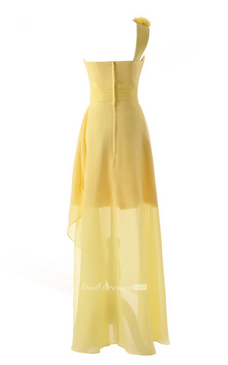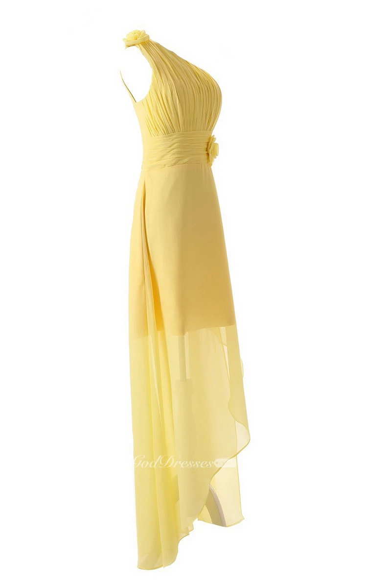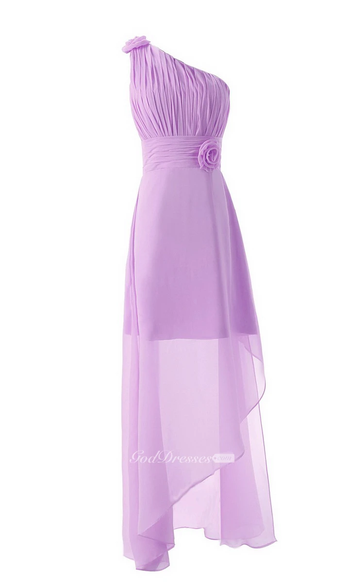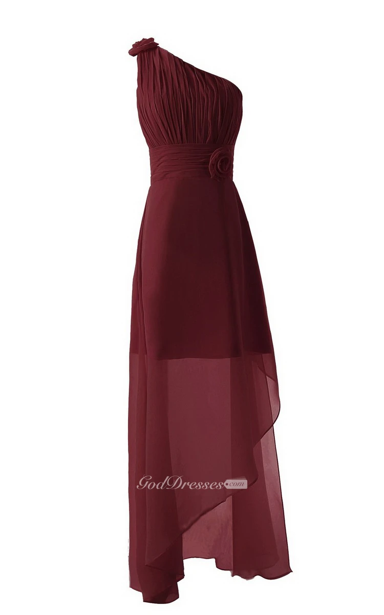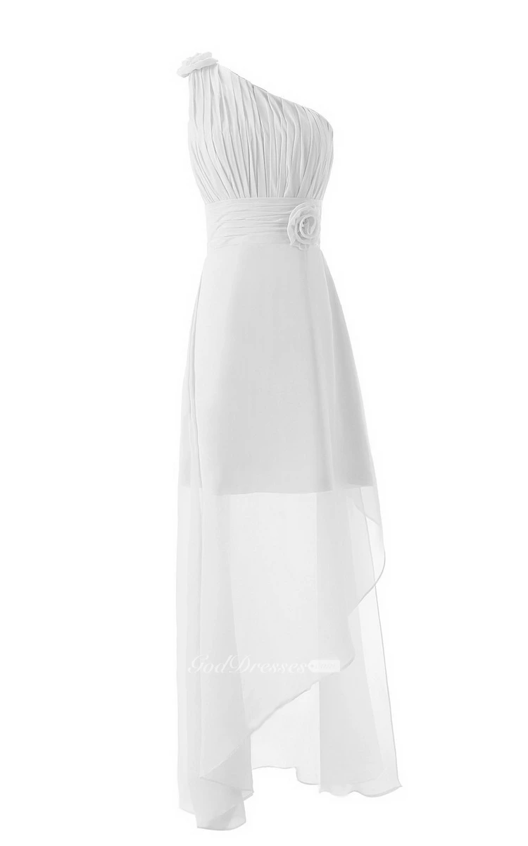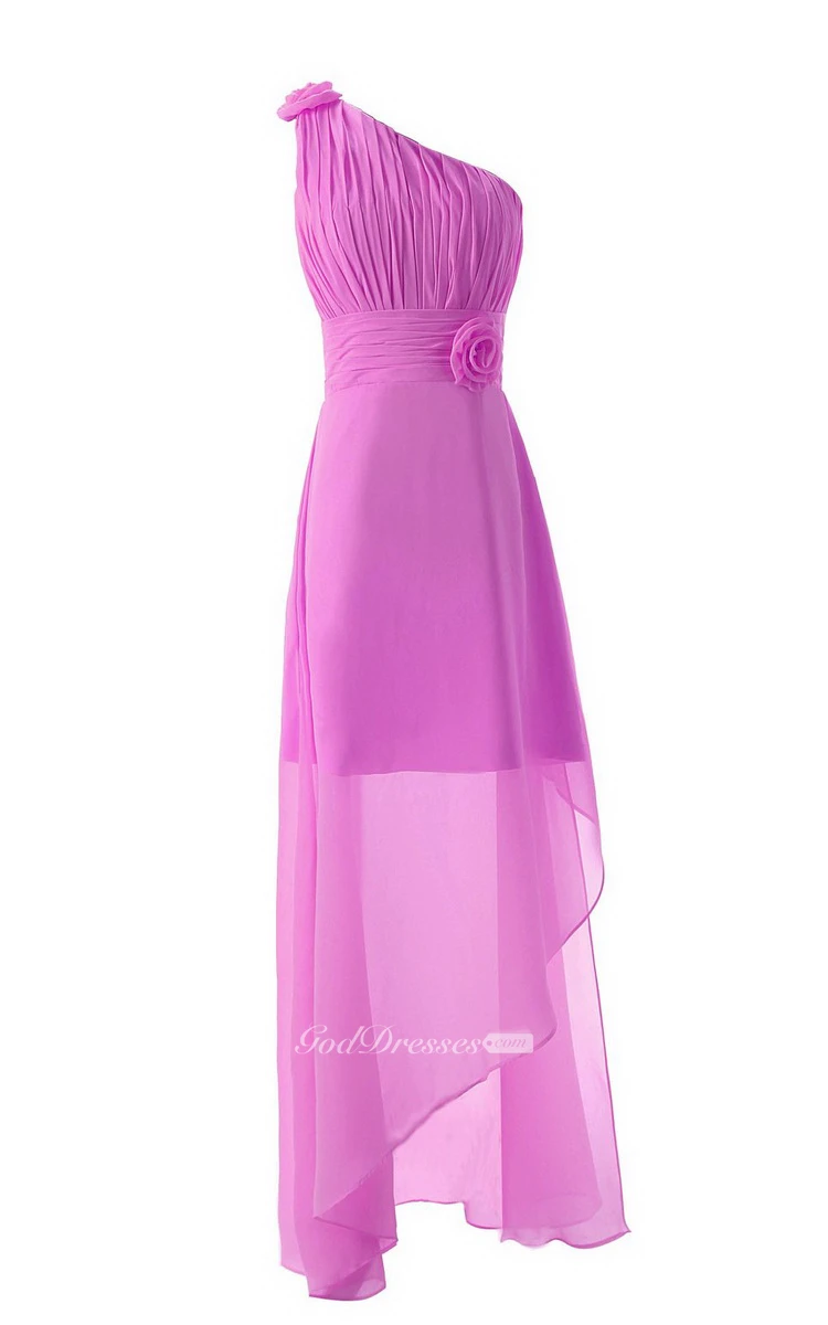Asymmetrical One-shoulder Pleated Chiffon A-line Dress With Flowers