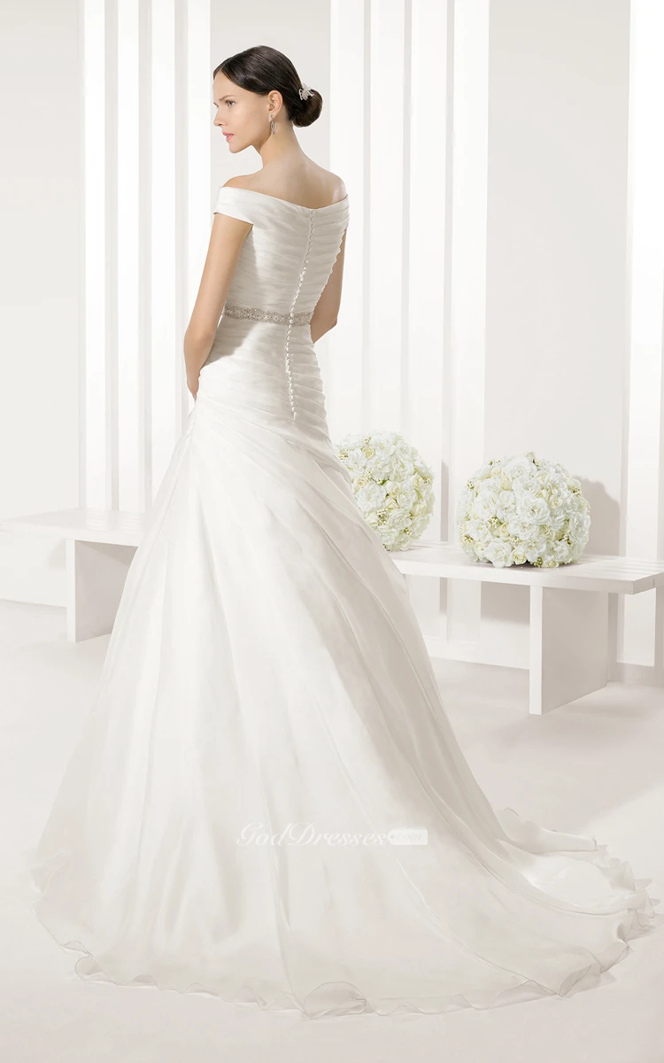 Asymmetrical Shoulder Off Gown With Beaded Sash