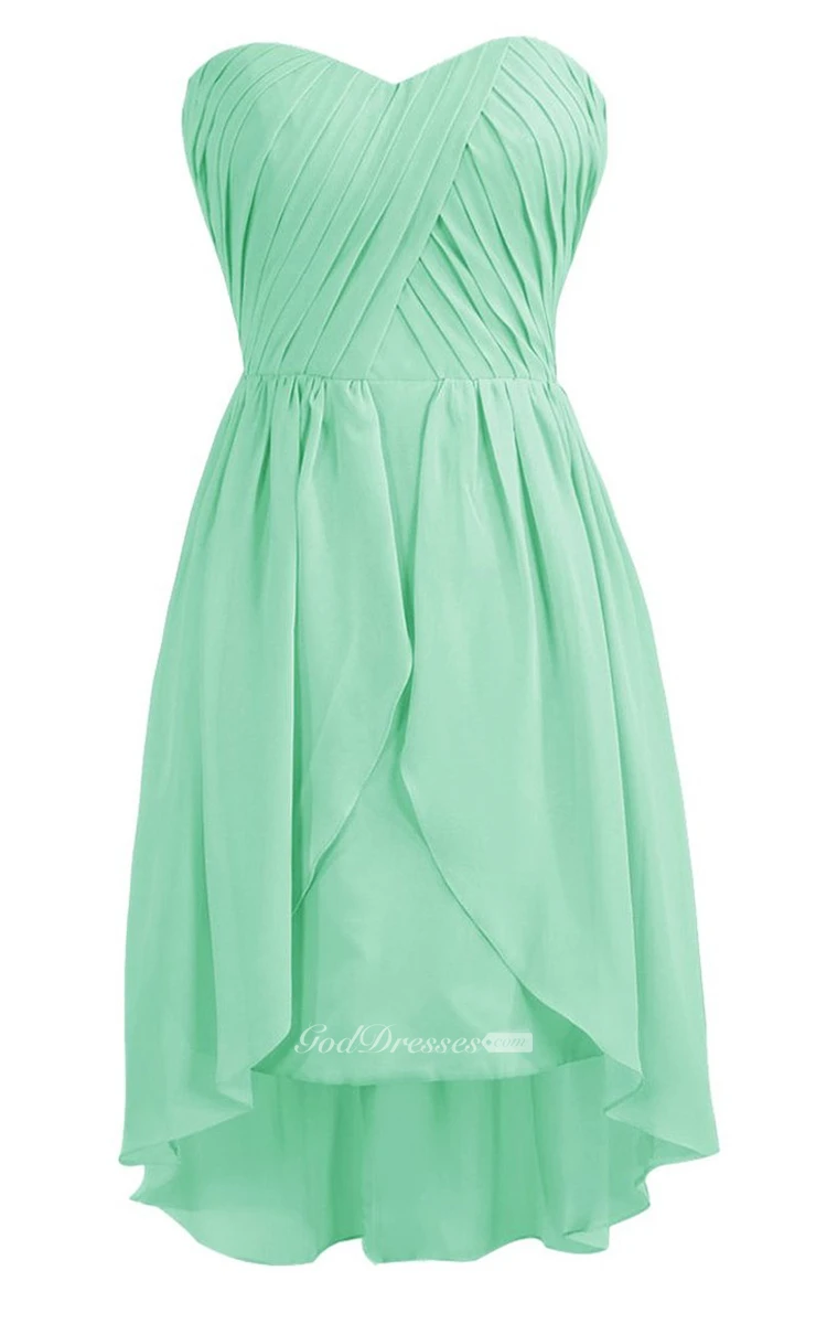 Asymmetrical Sweetheart Pleated Chiffon A-line Dress