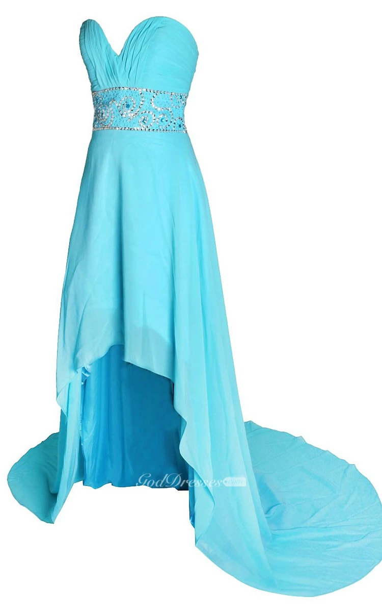Asymmetrical Train Sweetheart A-line Dress With Beaded Band