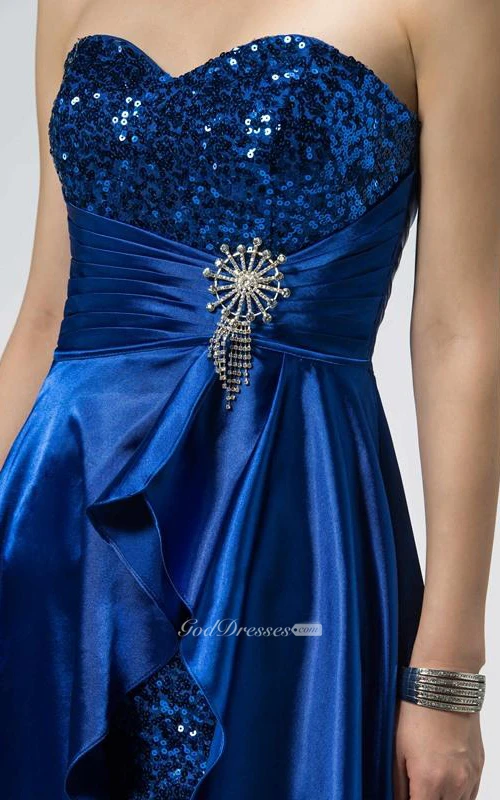 Asymmetry Sweetheart Sequins Sweep Train Prom Dress