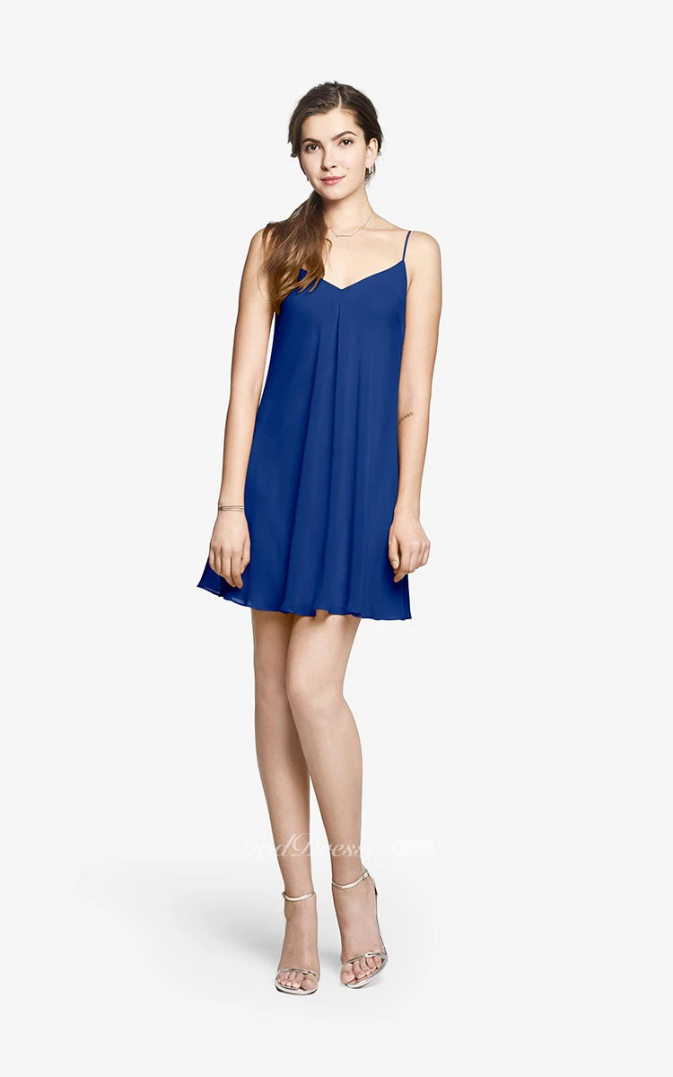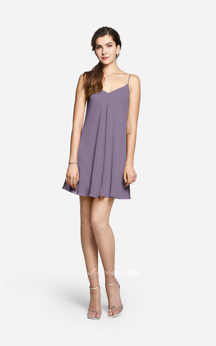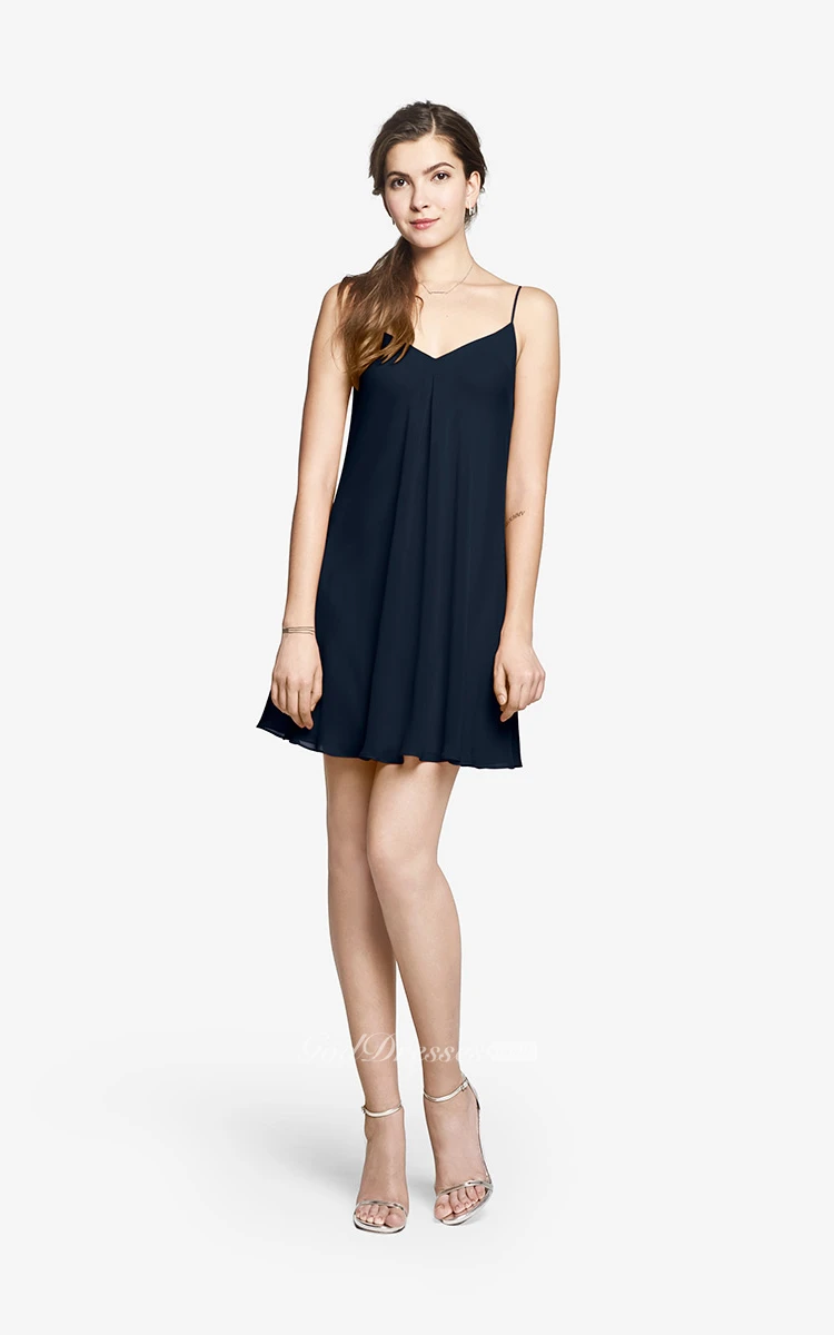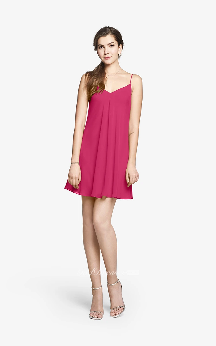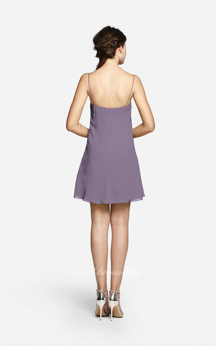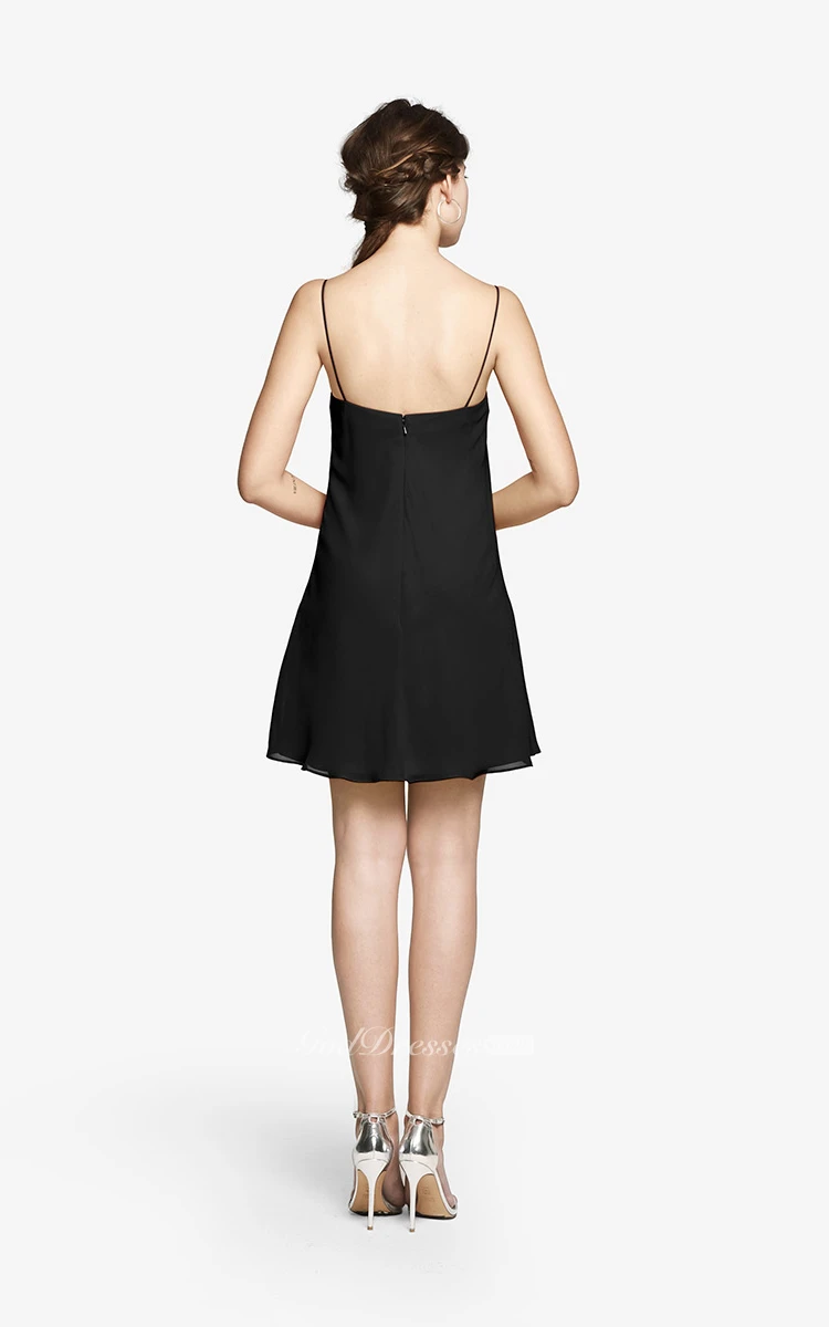 Back-to-basic Spaghetti Strap Mini Chiffon Dress With Ruching