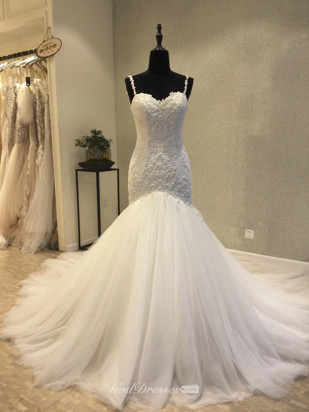 Backless Mermaid Sweetheart Wedding Dress With Straps And Lace Appliques