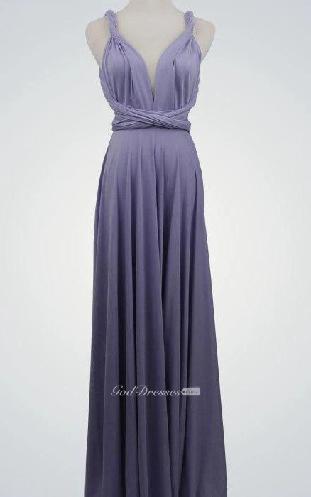 Backless Straped V Neck A-line Jersey Long Dress With Sash