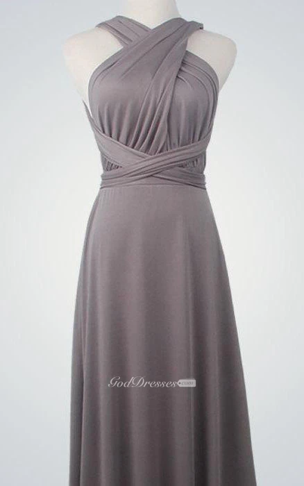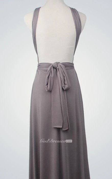 Backless Straped V Neck A-line Jersey Long Dress With Sash Silver