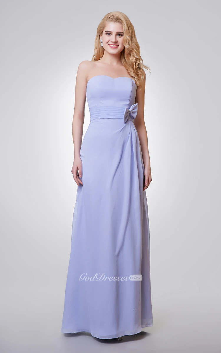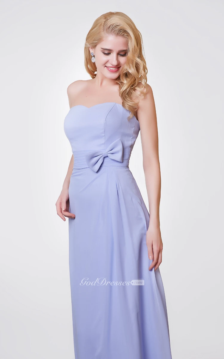 Backless Sweetheart A-line Long Chiffon Dress With Bow