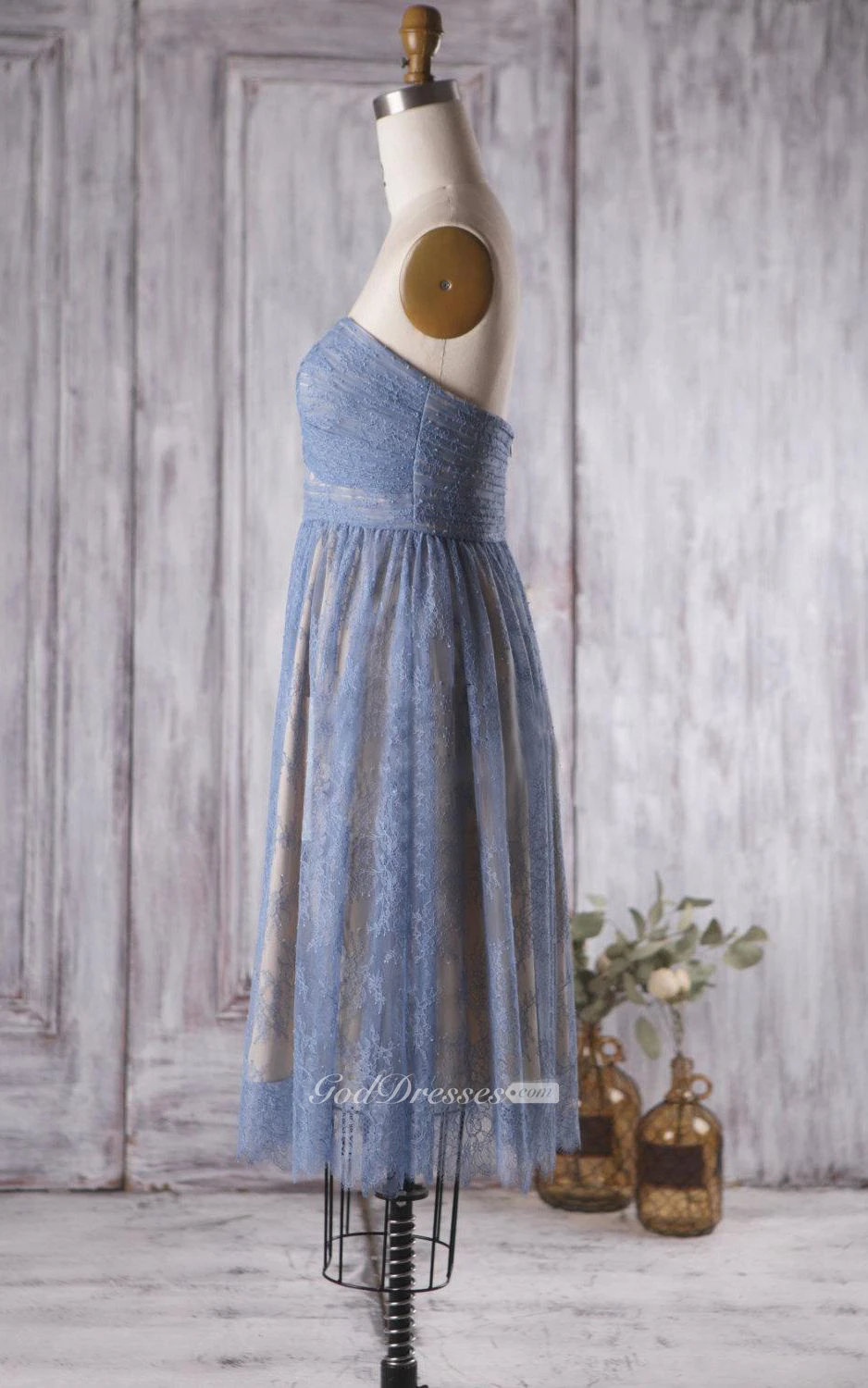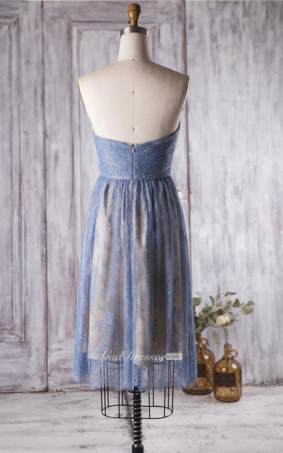 Backless Sweetheart A-line Pleated Lace Knee Length Dress