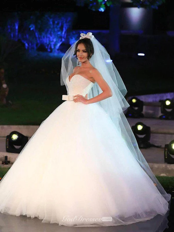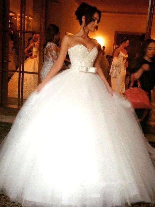 Ball Gown Bow knot Sweetheart Tulle Sleeveless Floor-length Zipper Back Wedding Dresses