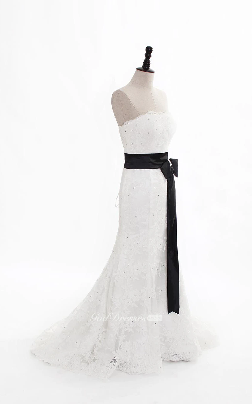 Ball Gown Empire Mermaid Long Off-The-Shoulder One-Shoulder Square Straps Scalloped Sleeveless Bell Empire Bow Sash Broach Court Train Lace-Up Back Straps Lace Satin Dress