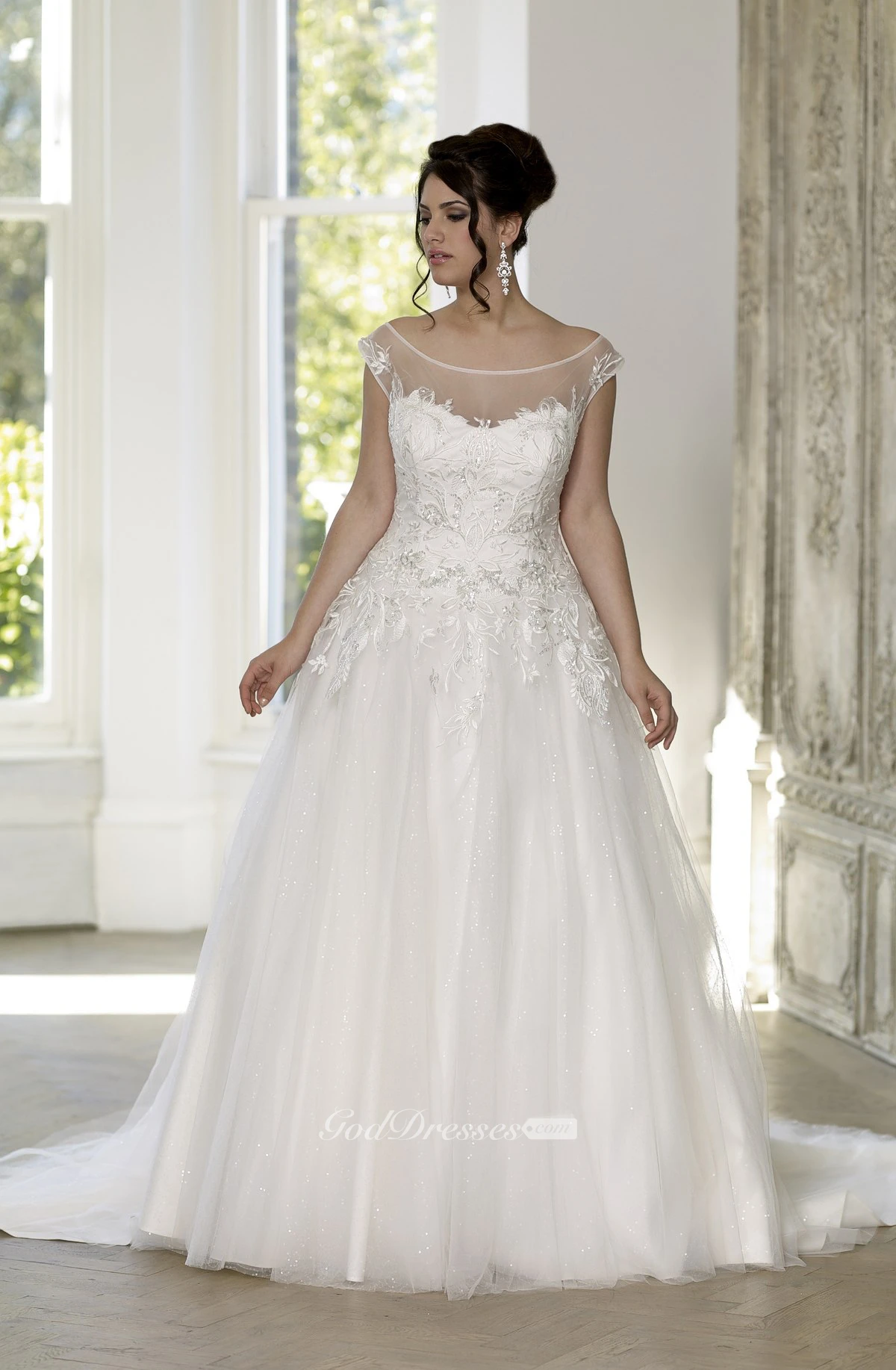 Ball Gown Floor-Length Scoop Neck Tulle Court Train Lace-Up Back Embroidery Dress