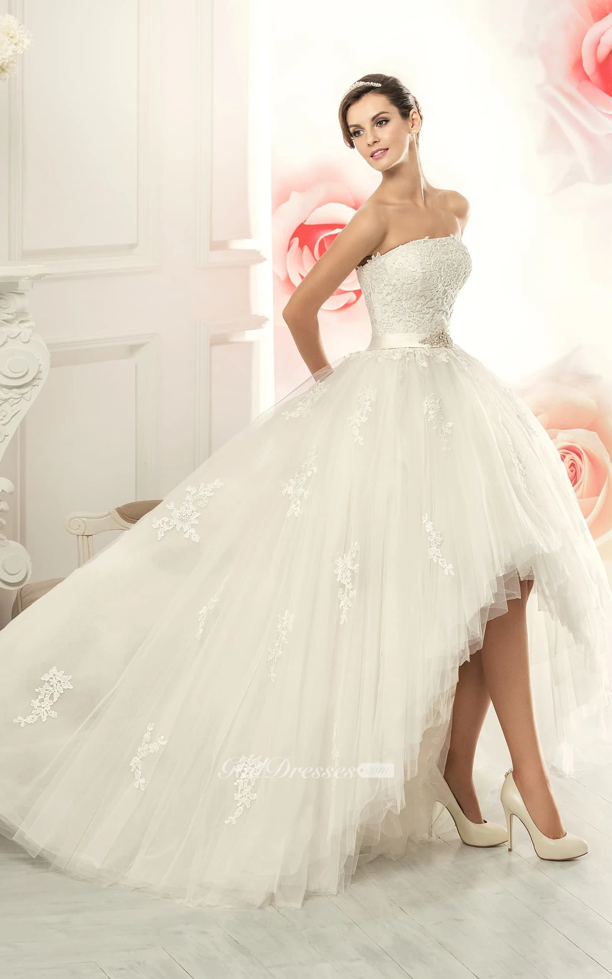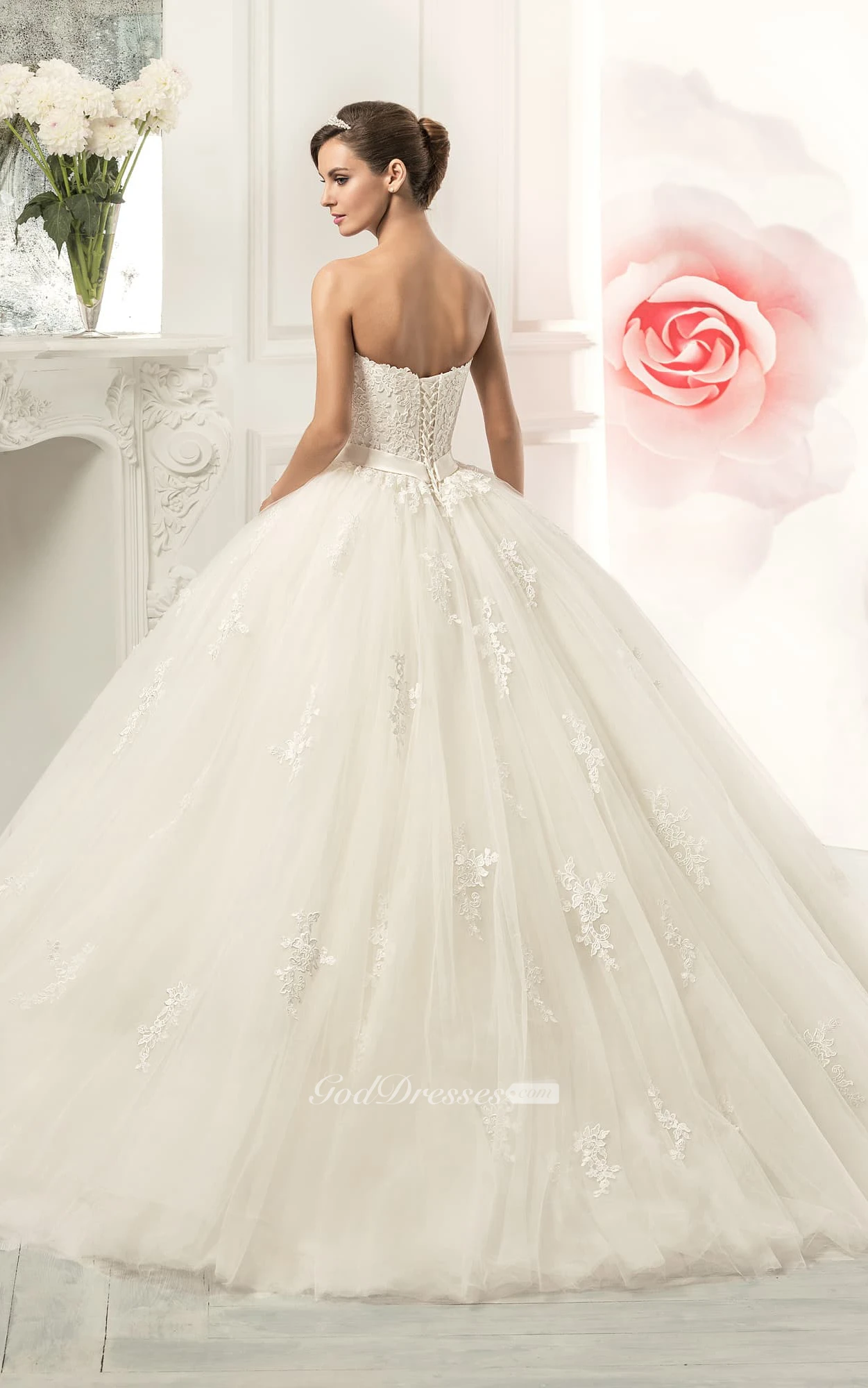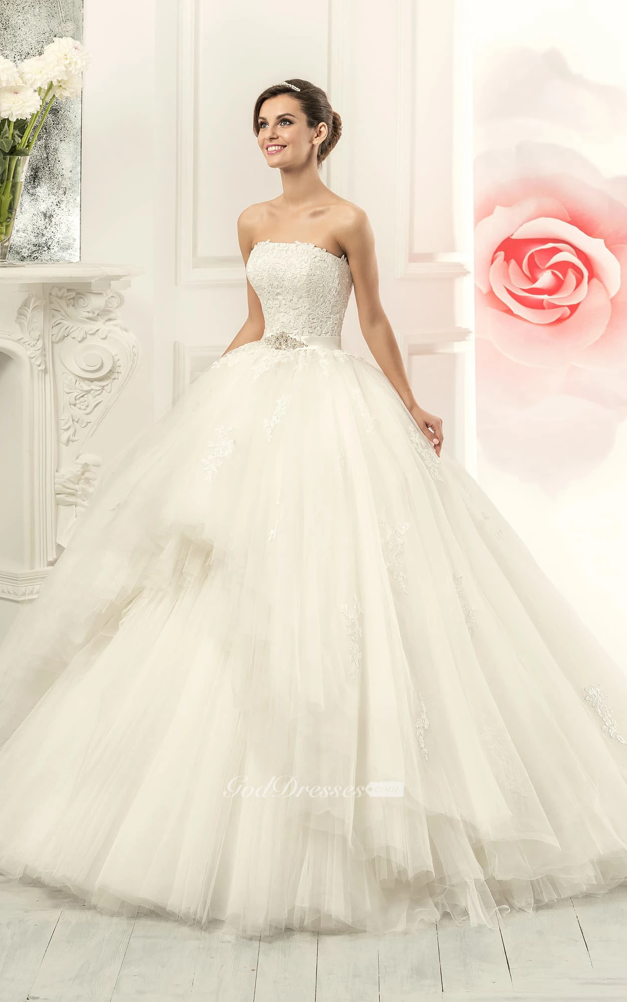 Ball Gown Floor-Length Strapless Sleeveless Corset-Back Tulle Dress With Appliques And Waist Jewellery