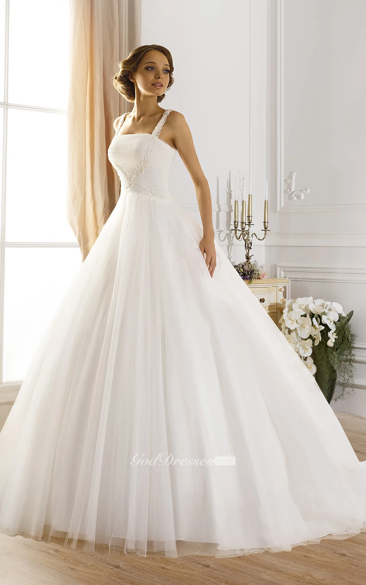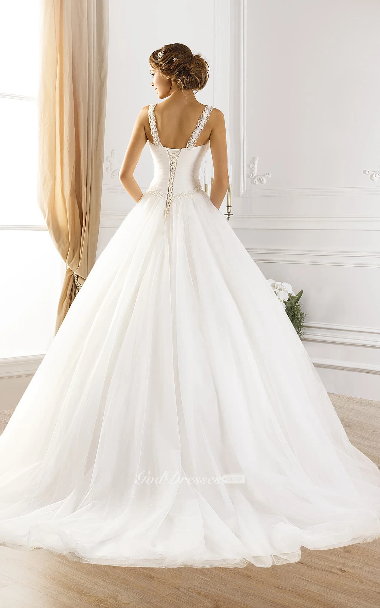Ball Gown Floor-Length Straps Sleeveless Lace-Up Tulle Dress