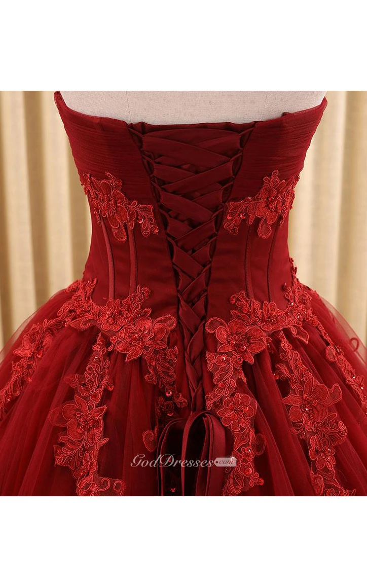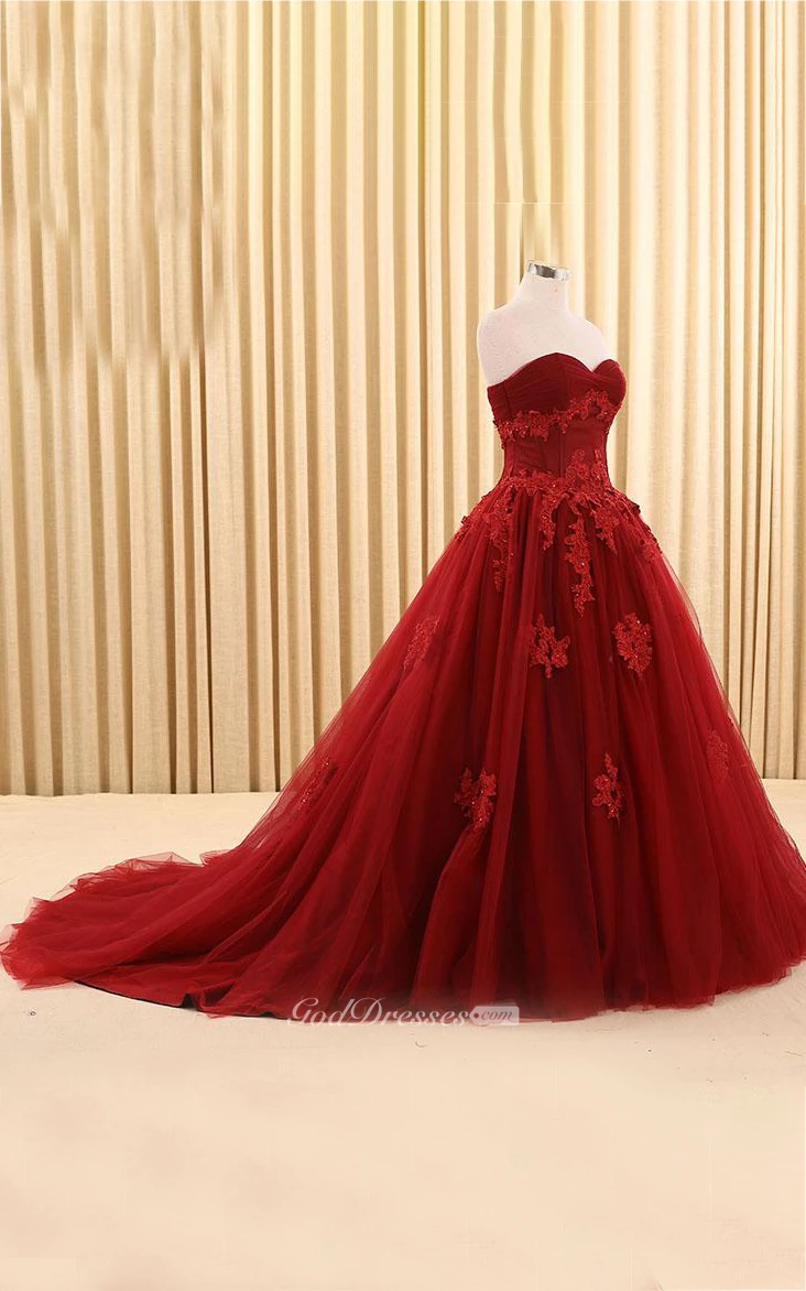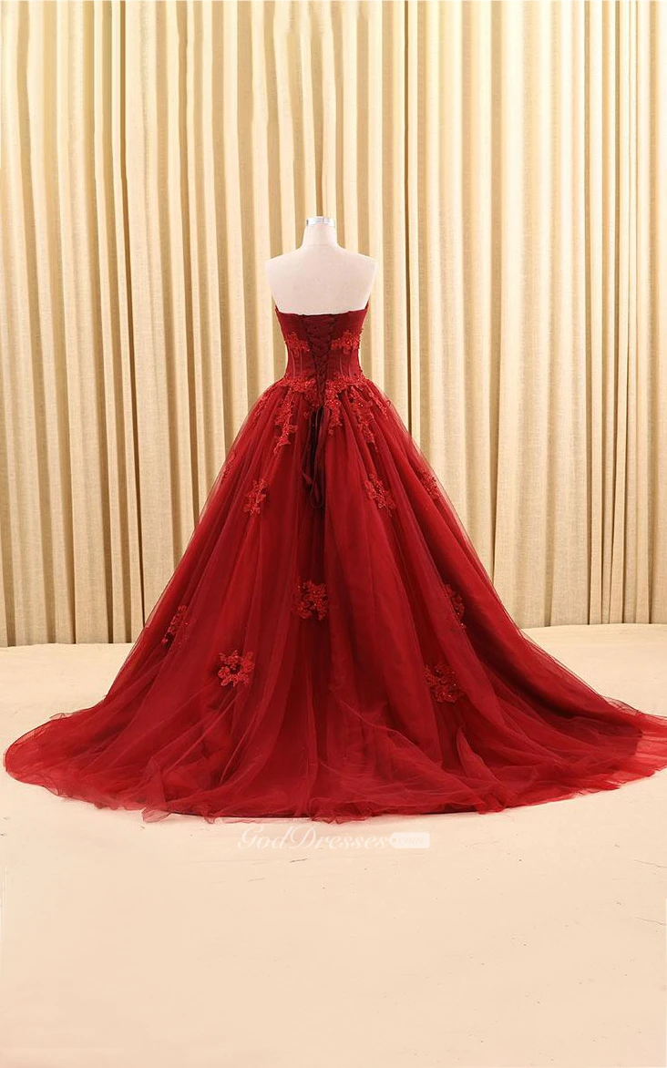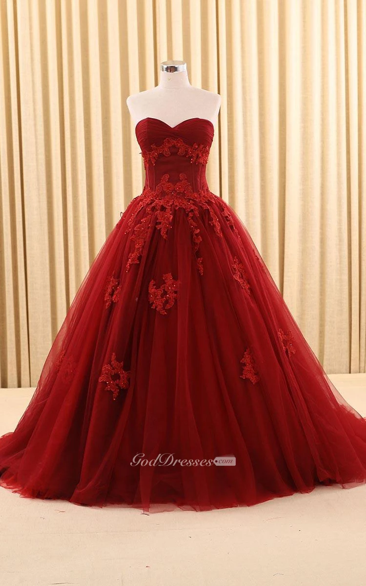 Ball Gown Floor-Length Sweetheart Appliques Sweep Train Zipper Corset Back Tulle Lace Dress