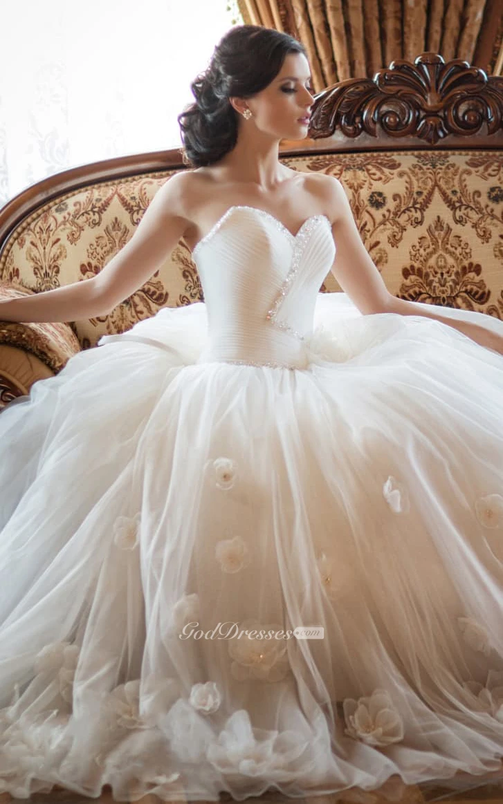 Ball Gown Floor-Length Sweetheart Sleeveless Tulle Dress With Beading And Flower