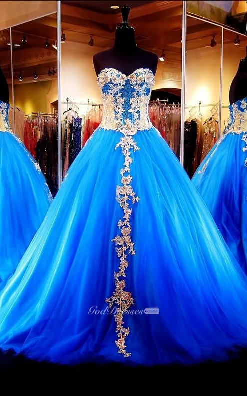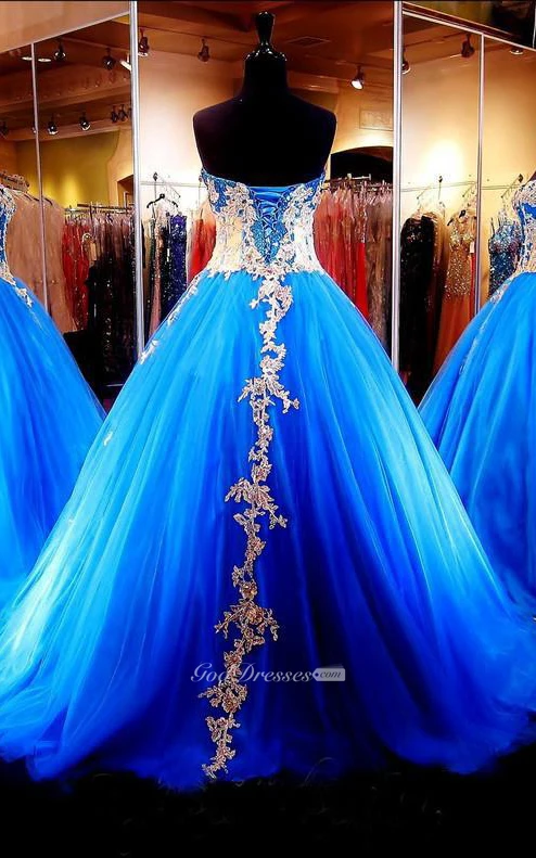 Ball Gown Long Appliques Zipper Lace-Up Back Tulle Lace Dress