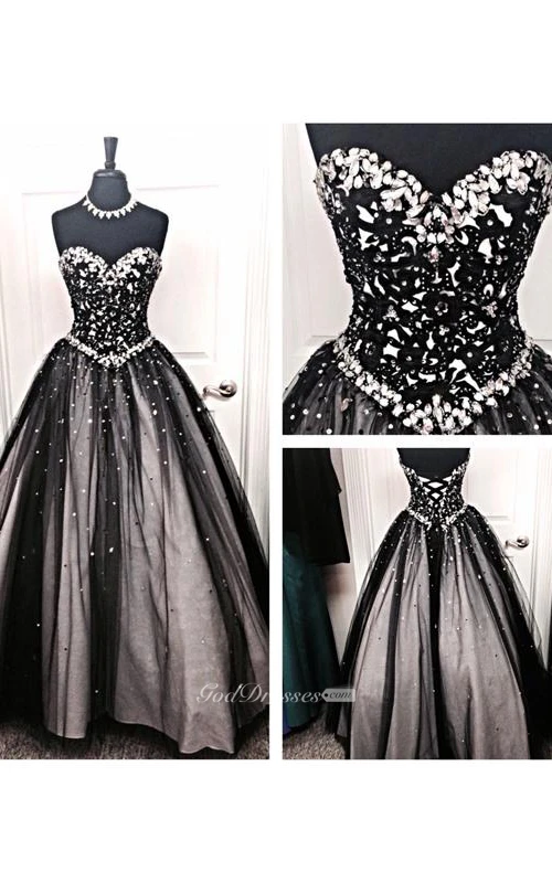 Ball Gown Long Sweetheart Sleeveless Bell Dropped Beading Lace-Up Back Tulle Lace Dress