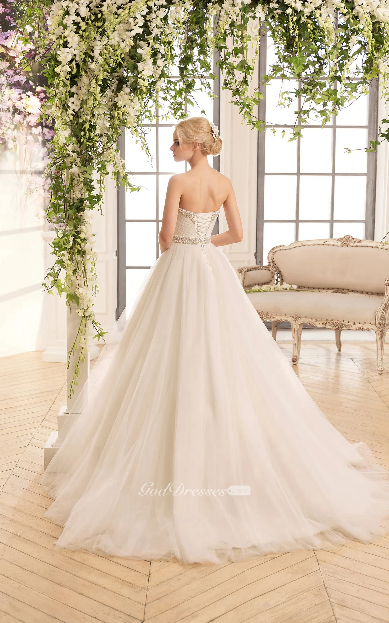 Ball Gown Long Sweetheart Sleeveless Lace-Up Tulle Dress With Beading And Criss Cross
