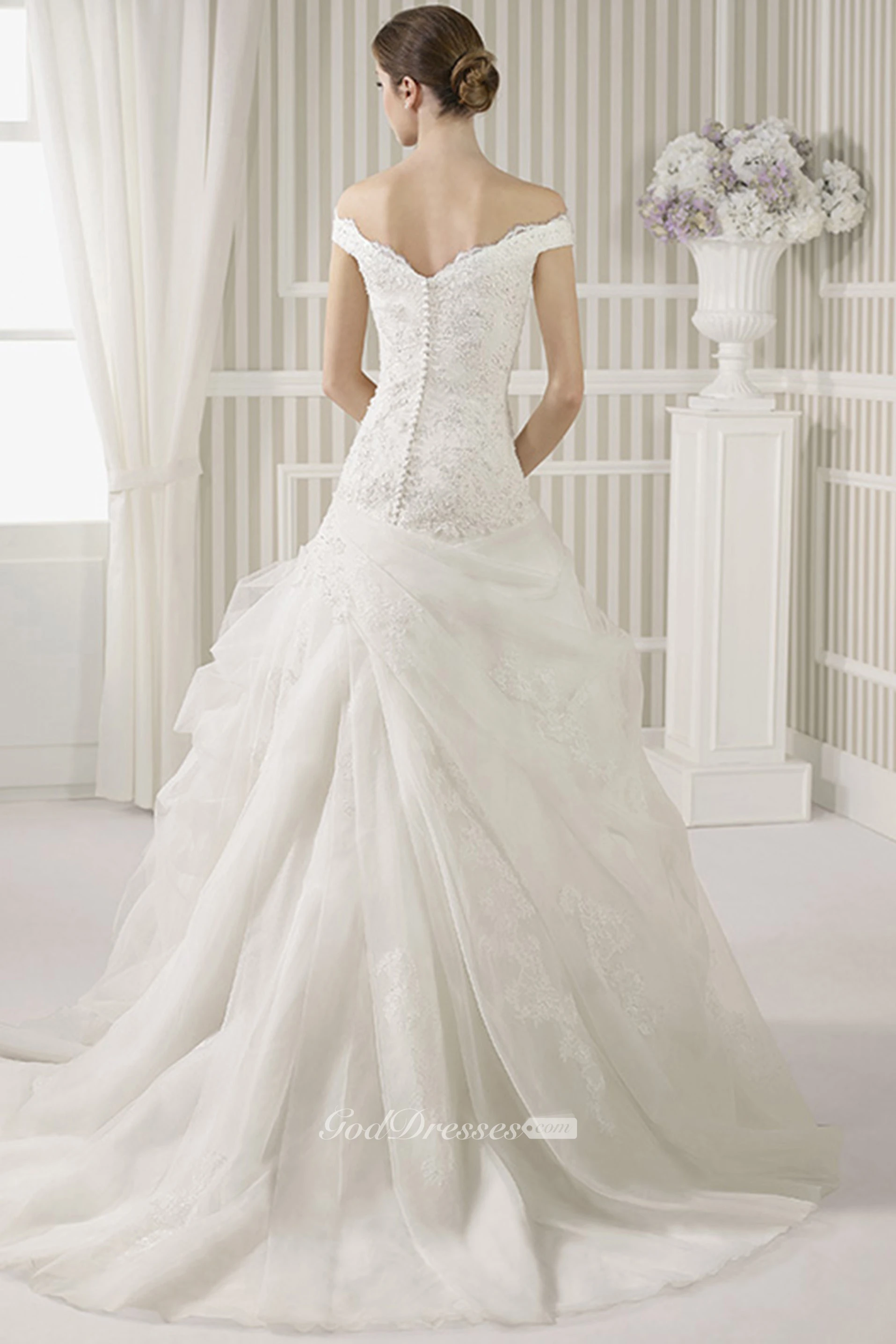 Ball Gown Maxi Off-The-Shoulder Appliqued Tulle Wedding Dress