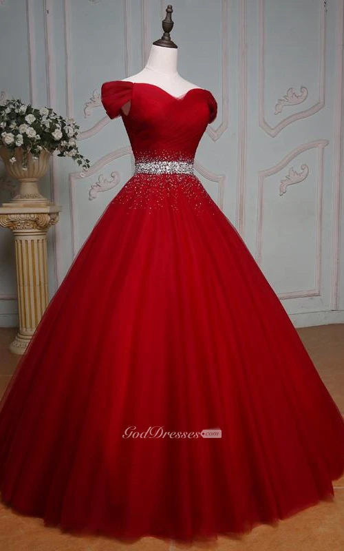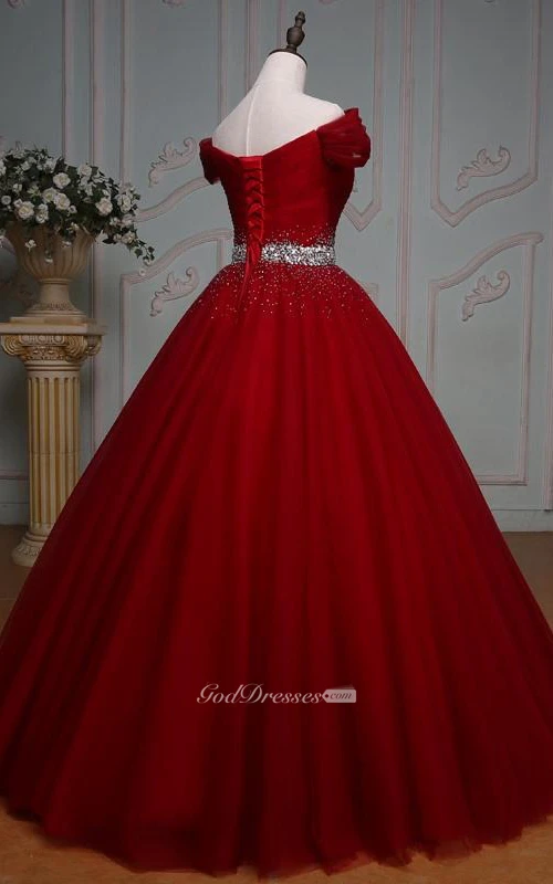 Ball Gown Maxi Off-The-Shoulder Sleeveless Bell Pleats Beading Corset Back Tulle Lace Dress