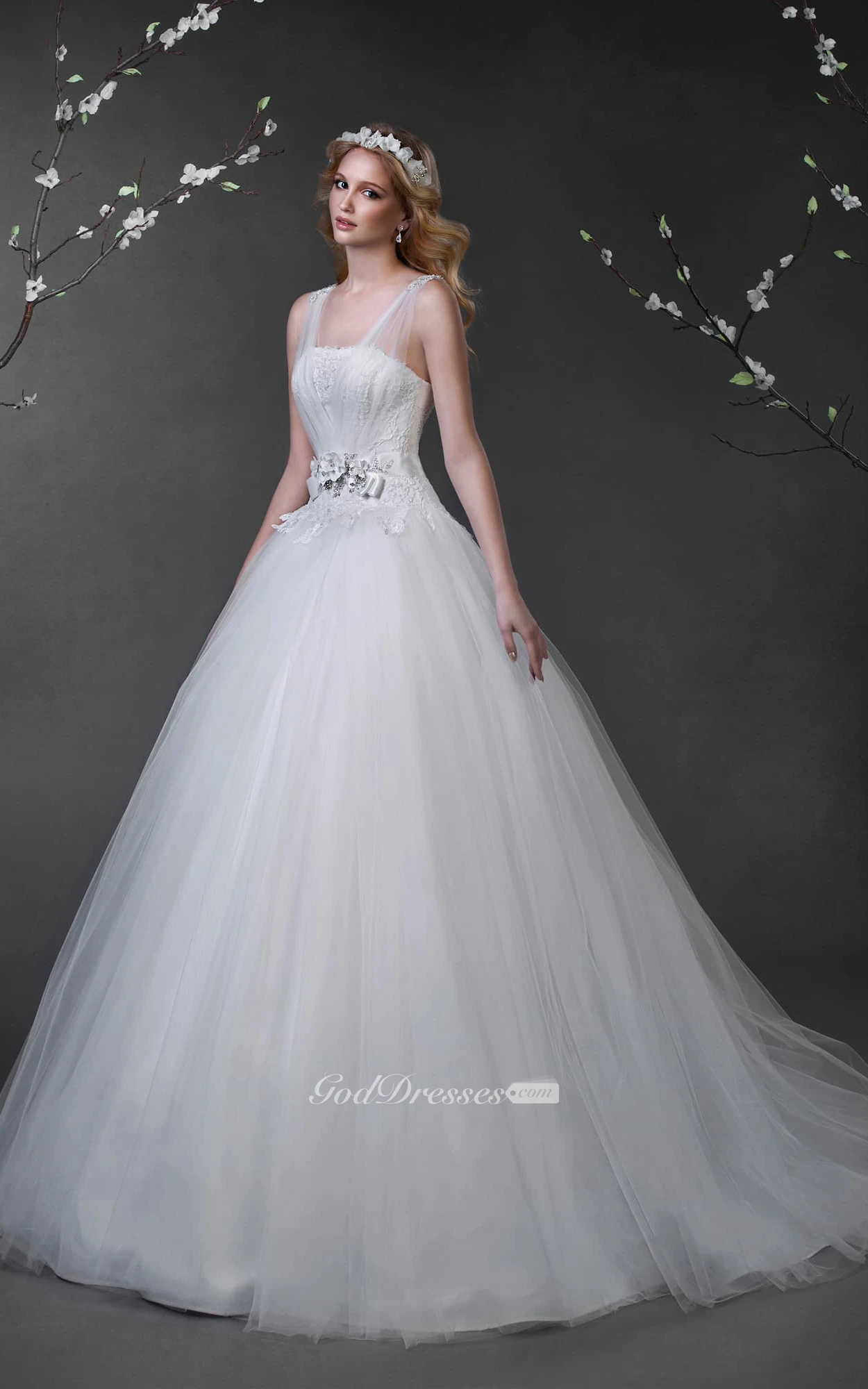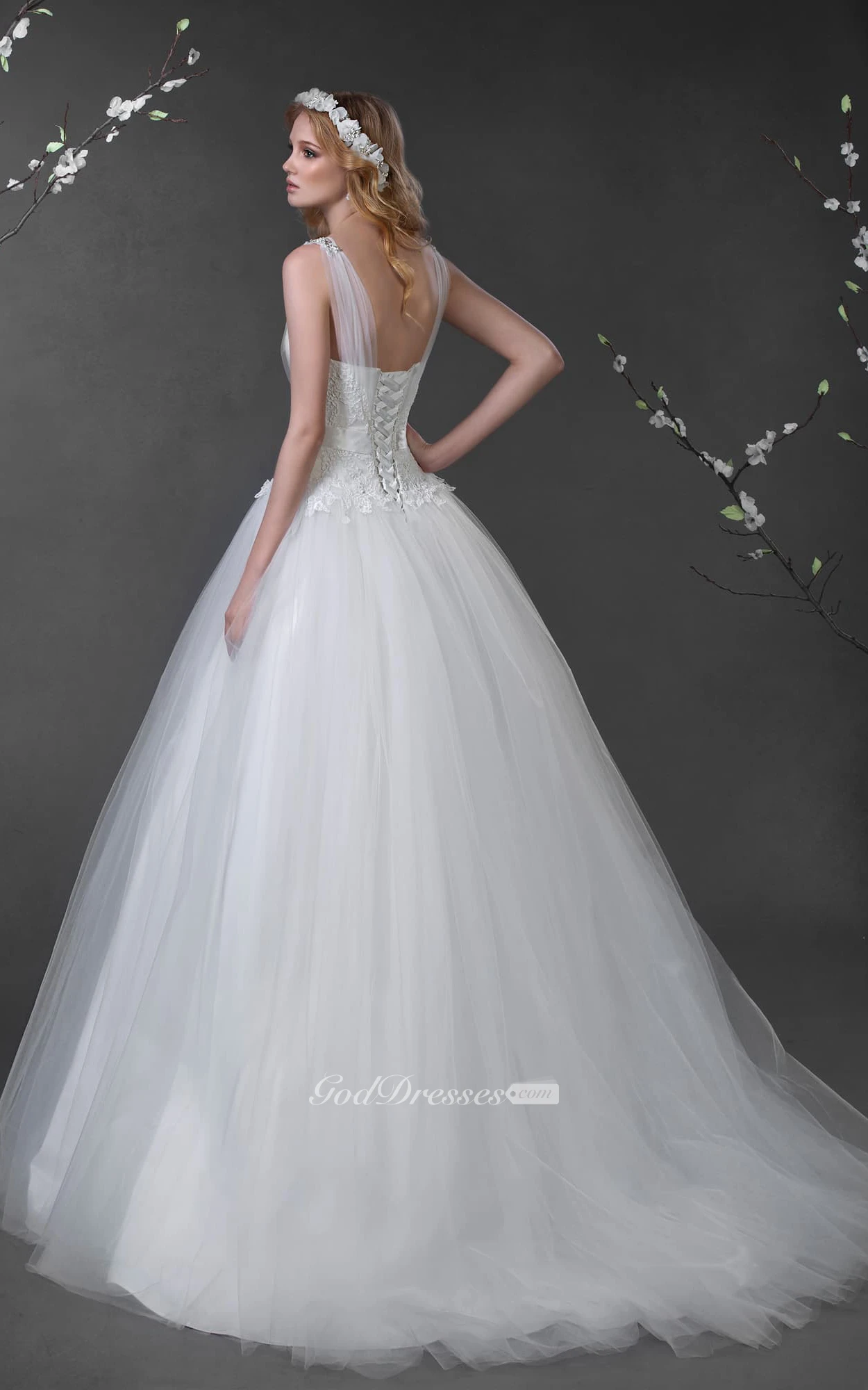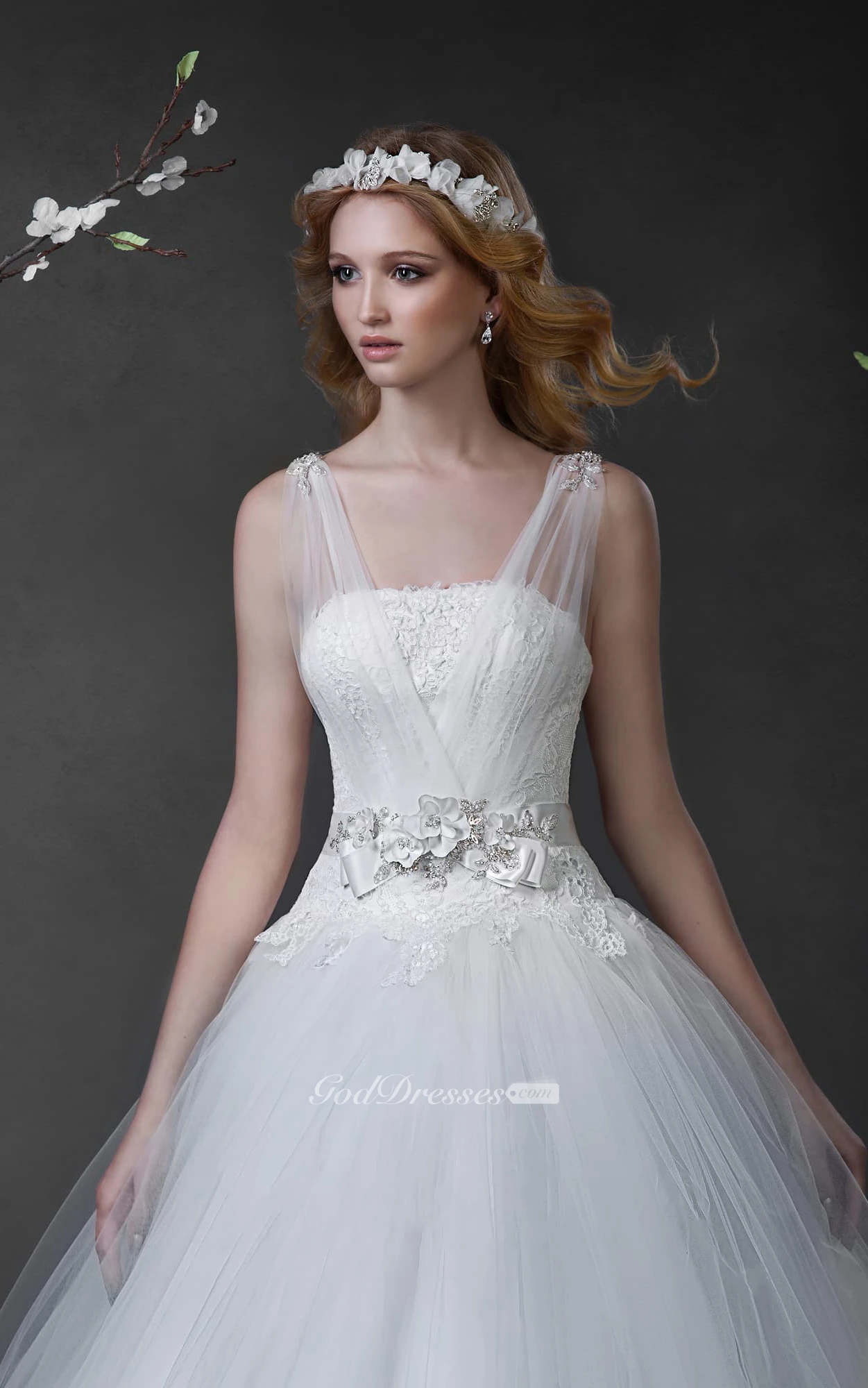 Ball Gown Maxi Sleeveless Lace-Up Tulle Dress With Appliques And Beading