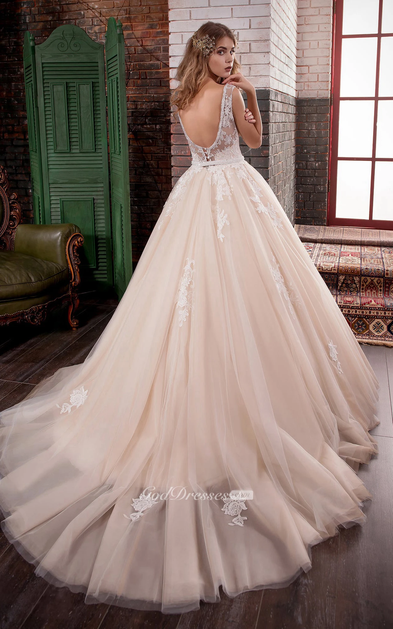 Ball Gown Maxi Square Sleeveless Deep-V-Back Tulle Dress With Appliques