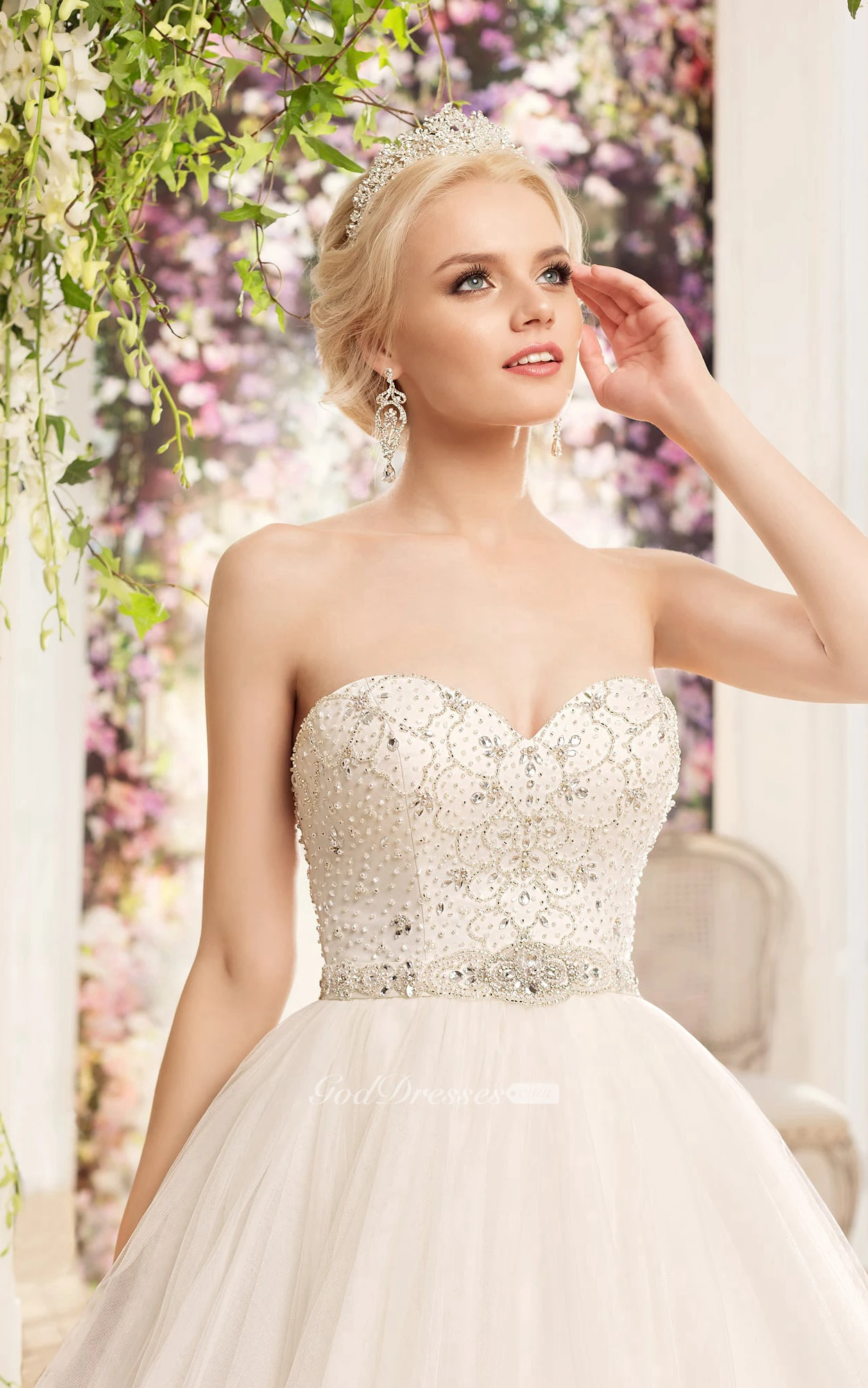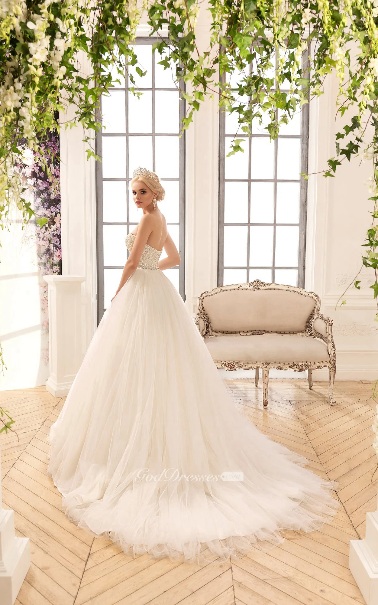 Ball Gown Maxi Sweetheart Sleeveless Backless Tulle Dress With Crystal Detailing