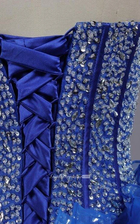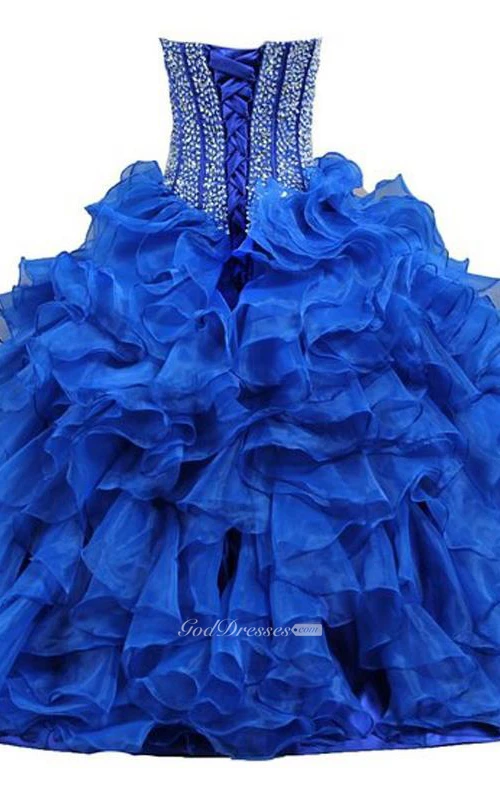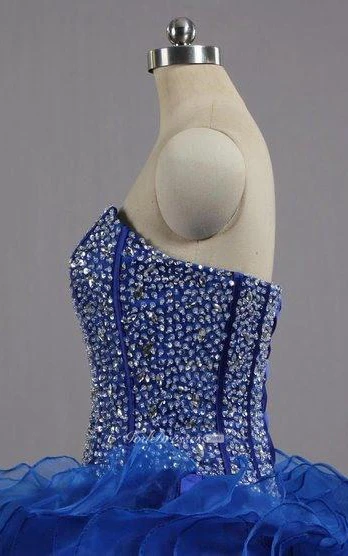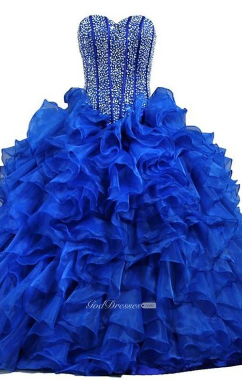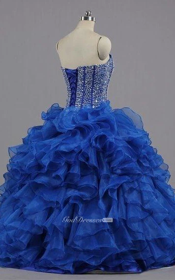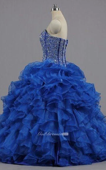 Ball Gown Maxi Sweetheart Sleeveless Bell Beading Ruffles Corset Back Lace Sequins Organza Dress