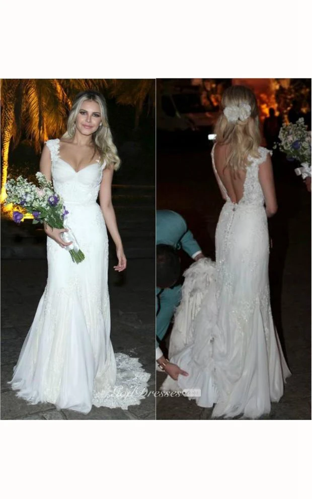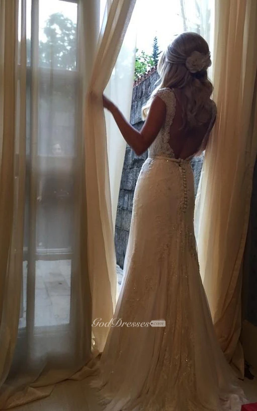 Ball Gown Mermaid Floor-Length Sweetheart Long Sleeve Beading Jacket Backless Corset Back Keyhole Tulle Lace Dress