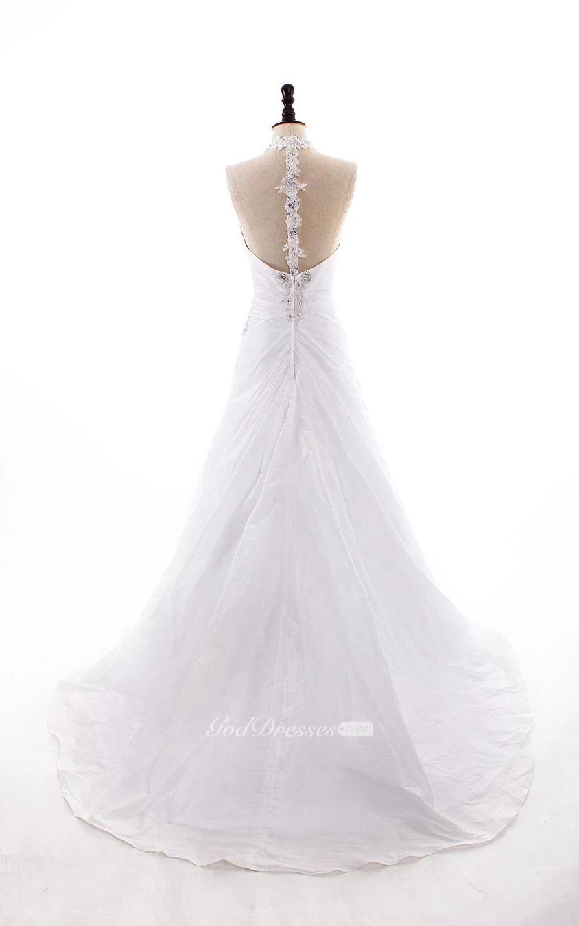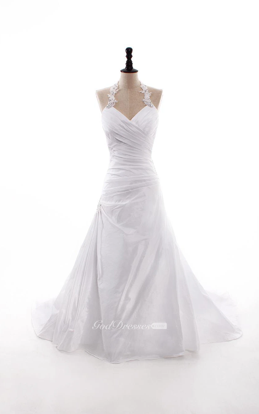 Ball Gown Mermaid Long Halter Off-The-Shoulder One-Shoulder V-Neck Sleeveless Bell Beading Chapel Train Zipper Lace Taffeta Dress