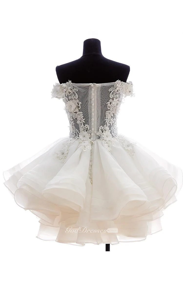 Ball Gown Mini Off-The-Shoulder Appliques Button Zipper Corset Back Lace Organza Dress