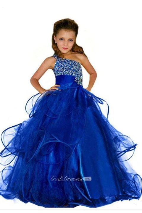 Ball Gown One-Shoulder Sleeveless Beaded Flower Girl Dress