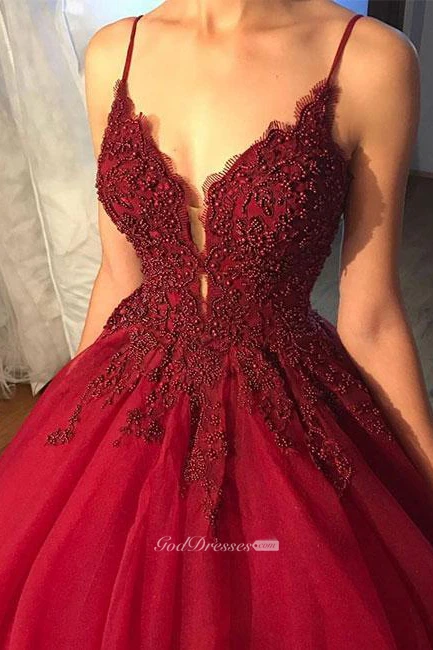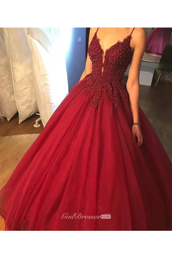 Ball Gown Organza Lace Spaghetti Sleeveless Zipper Dress