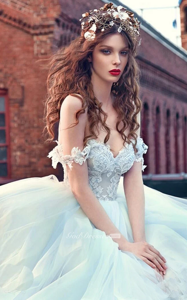 Ball Gown Short Off-The-Shoulder Sleeveless Bell Pleats Appliques Backless Tulle Lace Dress