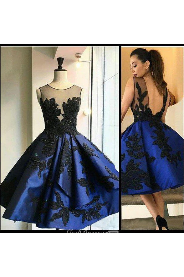 Ball Gown Sleeveless Satin Bateau Deep-V Back Tea-length Homecoming Dress