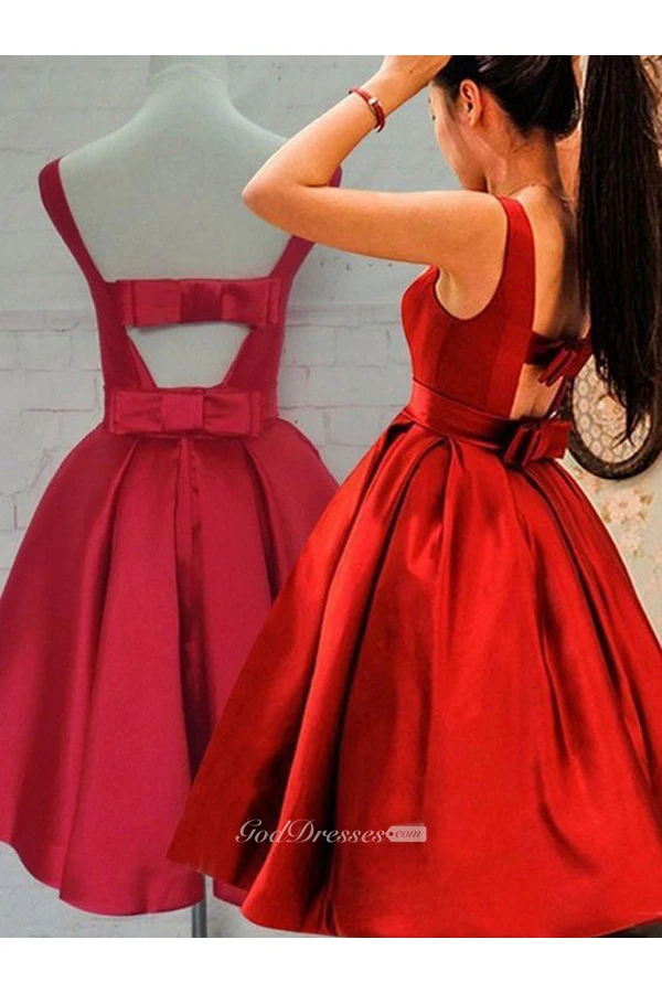 Ball Gown Sleeveless Satin Open Back Tea-length Homecoming Dress