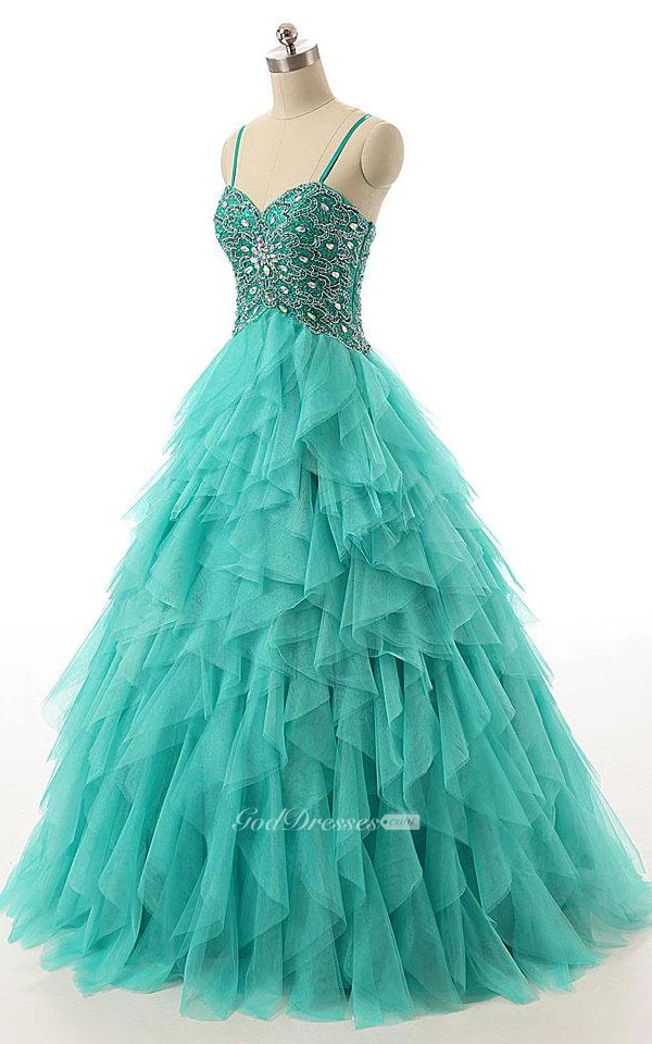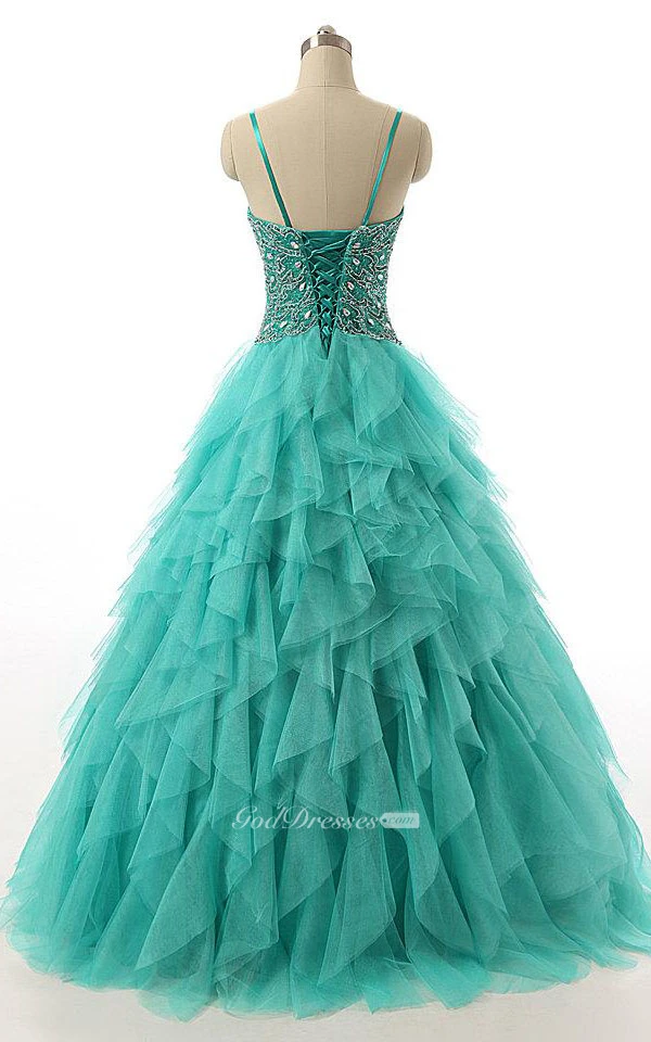 Ball Gown Sweetheart Tulle&Lace Dress With Beading&Corset Back