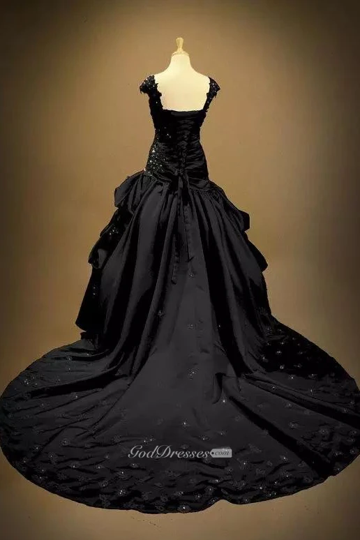 Ball Gown Taffeta Straps Sleeveless Floor-length Chapel Train Wedding Dress with Beading and Ruffles