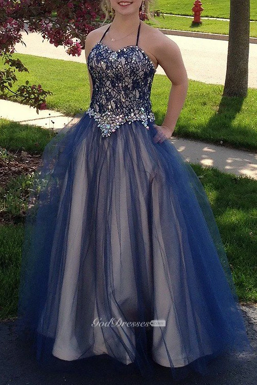Ball Gown Tulle Halter Sleeveless Lace-up Corset Back Dress