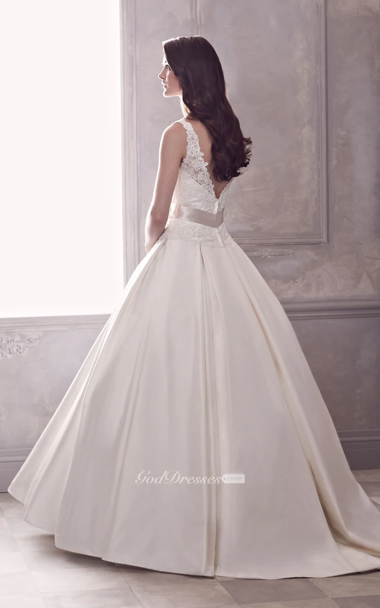 Ball Gown With Fitted Lace Bodice And Floral Detail