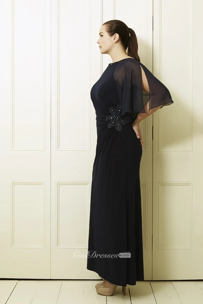 Bat-Sleeve Scoop-Neck Ankle-Length Chiffon Plus Size Prom Dress
