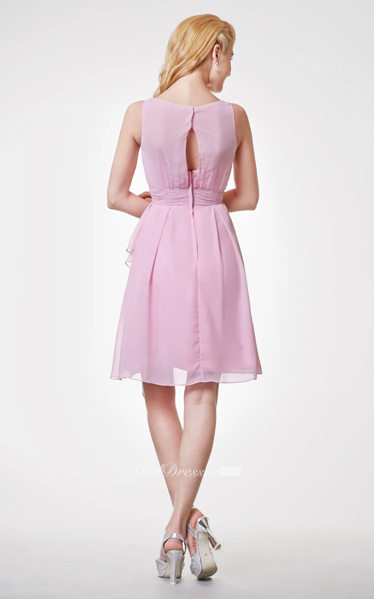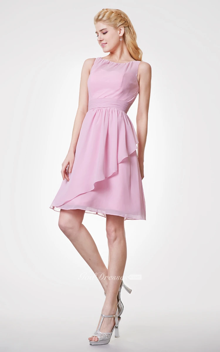 Bateau Neck A-line Chiffon Short Dress With Side Draping