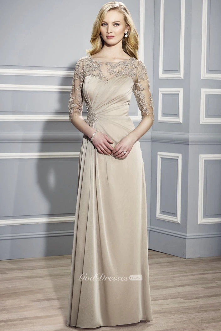 Bateau Neck Appliqued Half Sleeve Chiffon Formal Dress