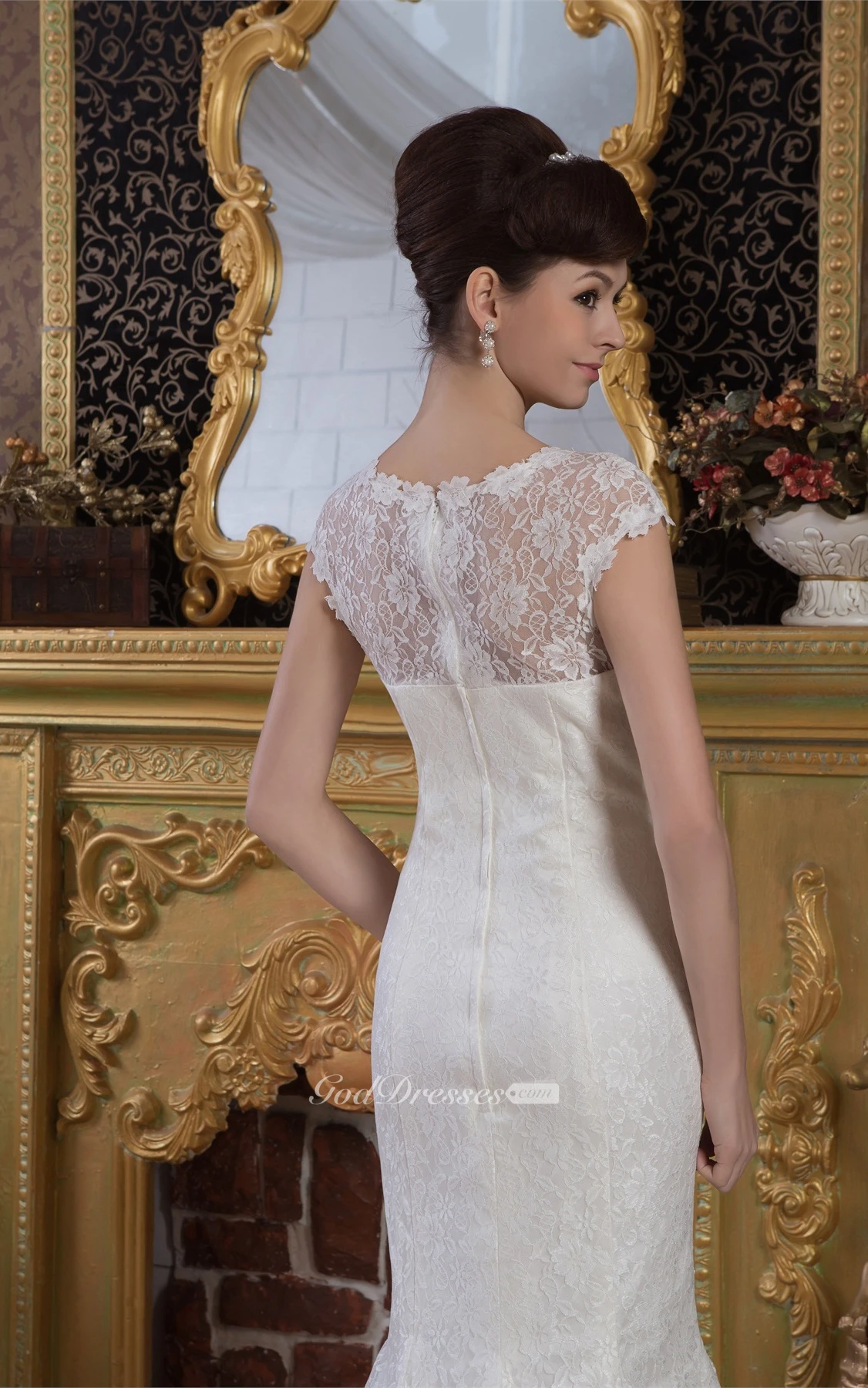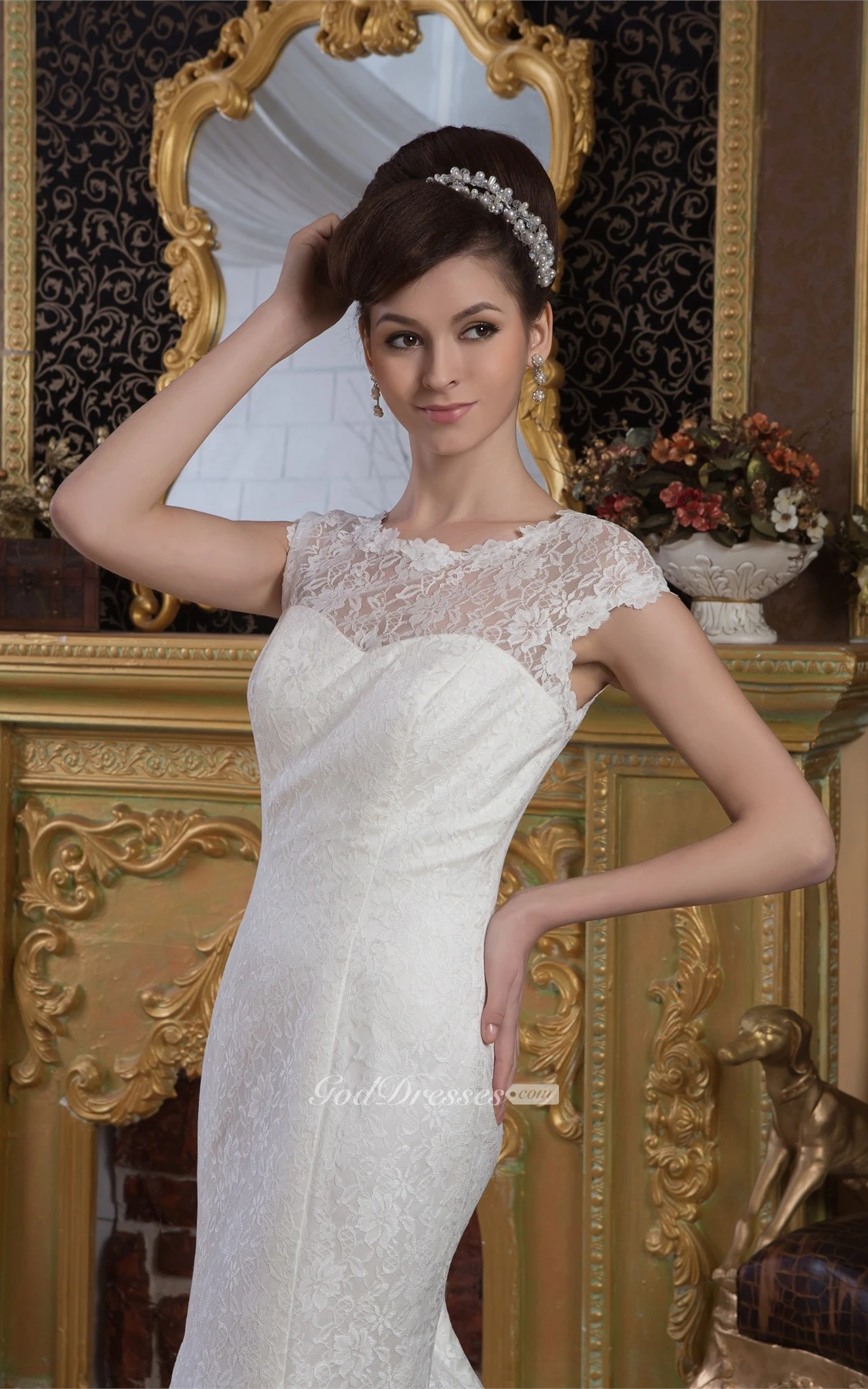 Bateau-Neck Caped-Sleeve Mermaid Lace Dress With Sweep Train