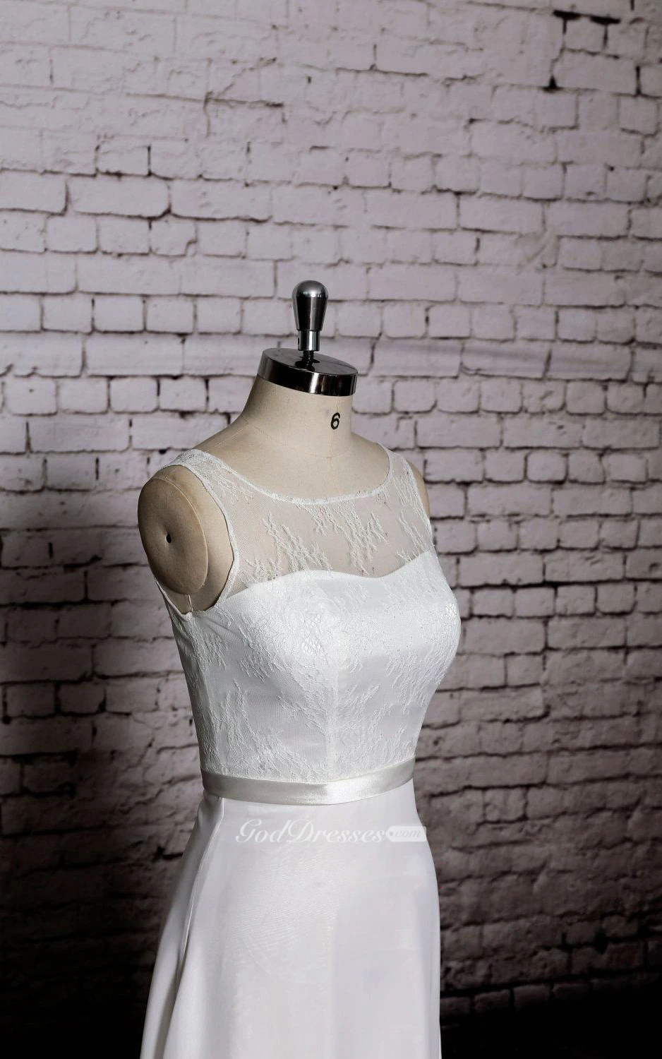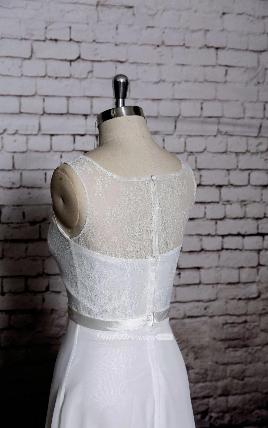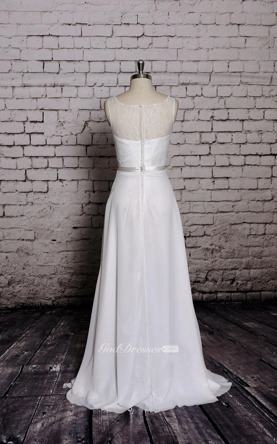 Bateau Neck Chiffon Sleeveless A-Line Dress With Lace Bodice and Satin Waistbelt